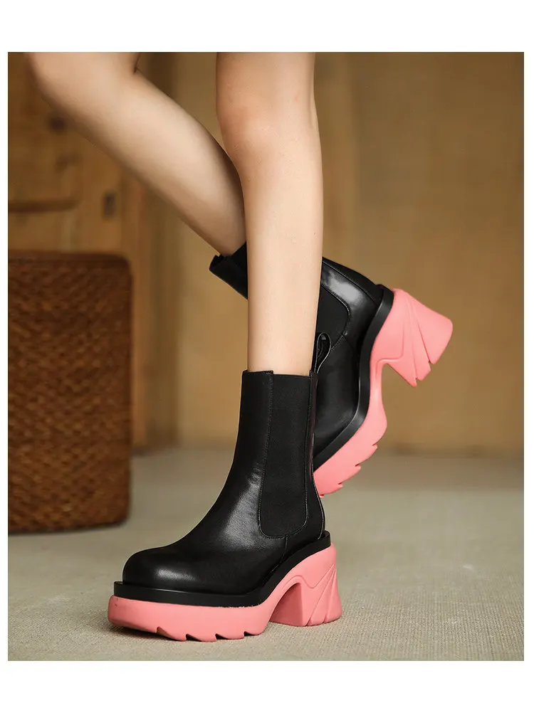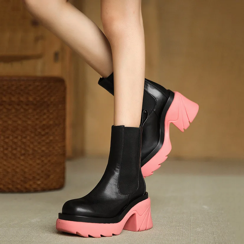 Женские ботильоны ярких цветов на толстой подошве Нескользящая женс...