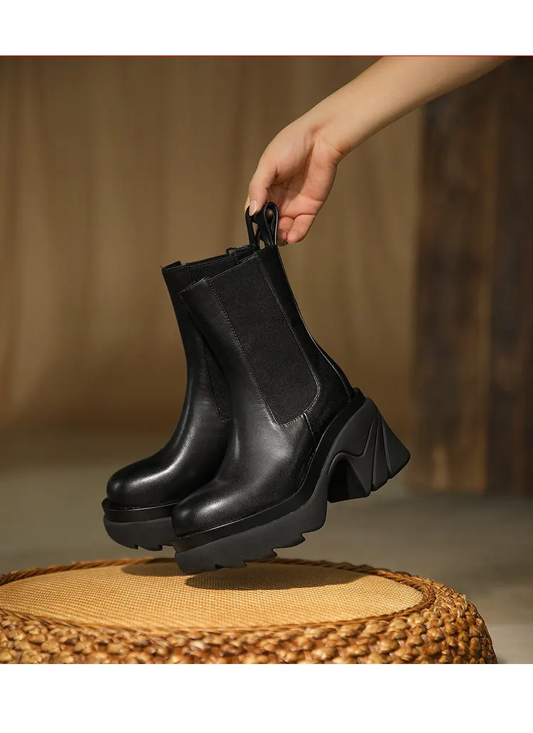 Женские мотоциклетные ботинки на платформе, ботильоны с круглым нос...