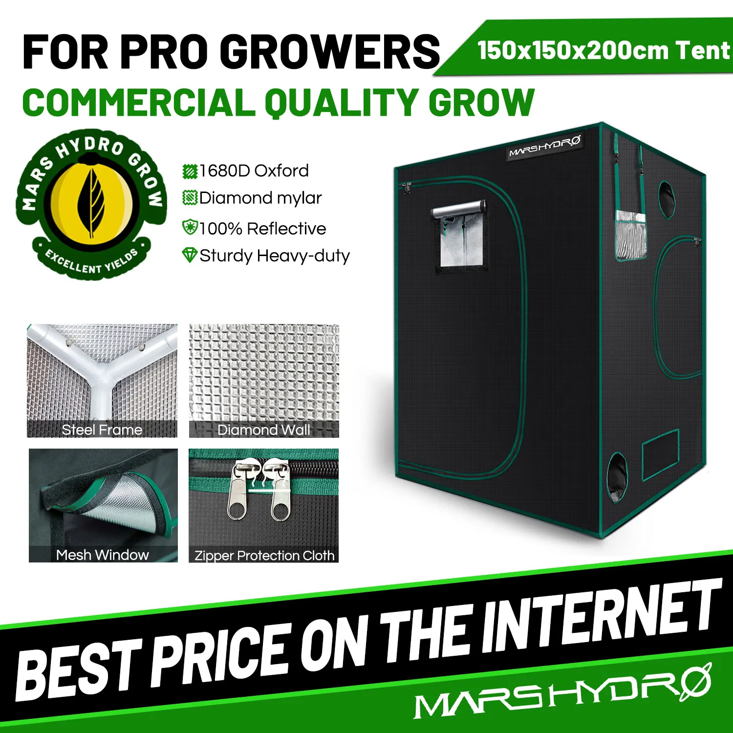 Mars Hydro grow tent изготовлен из 99% светоотражающих алмазных майларов, более благоприятный для роста растений. В то время как другие конструкции не однородный майлар и отражающая скорость составляет 50%, не будет обеспечивать эффективный светильник.