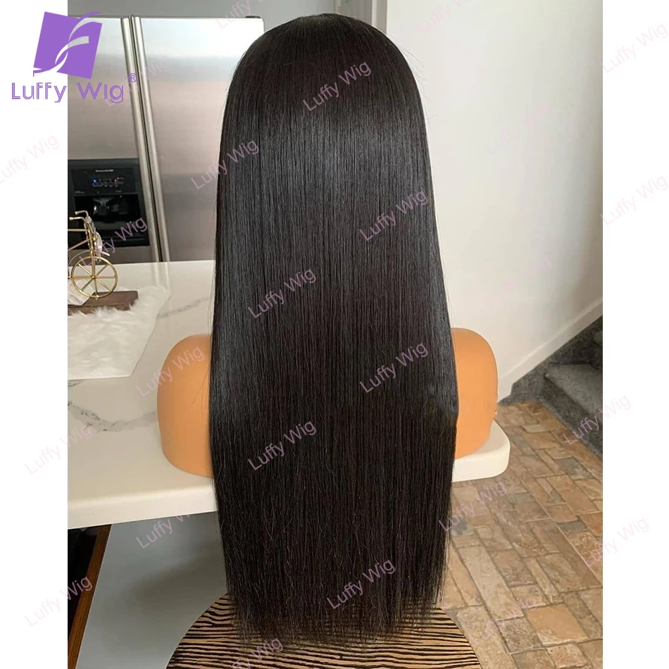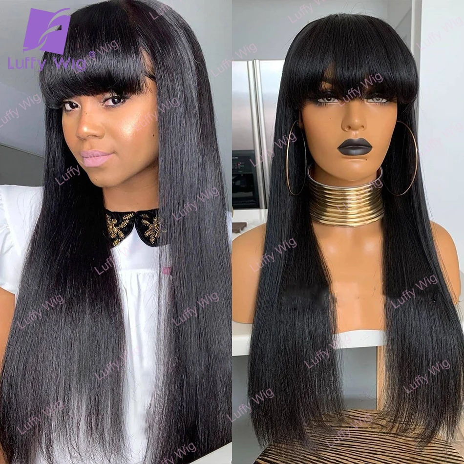 Парик из длинных шелковистых прямых натуральных волос с челкой, индийский парик из человеческих волос Реми, плотность 200, без клея, для чернокожих женщин
