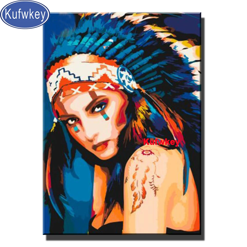 Алмазная 3d картина сделай сам, девушка с перьями, алмазная вышивка, полноразмернаякруглая Алмазная мозаика, фантастический подарок для американской женщины