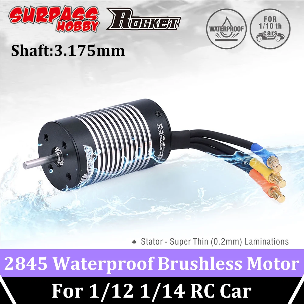 Двигатель бесщеточный Surpass Hobby Rocket 2845, водонепроницаемый вал двигателя 3,175 мм, 3100, 3800, 4370, 5000, 5900KV для 112, 114, машинки на радиоуправлении, WLtoys