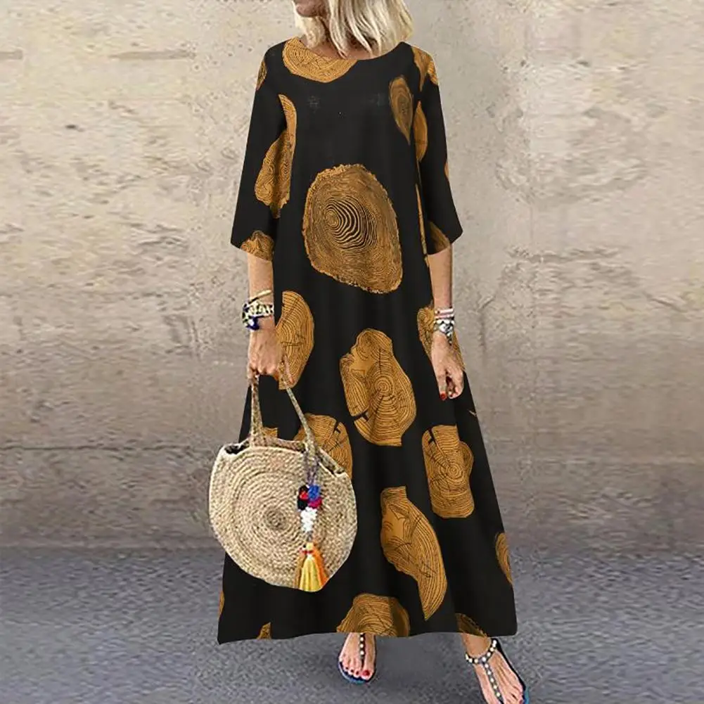 Женский богемный сарафан ZANZEA с цветочным принтом, летнее винтажное пляжное длинное платье с рукавом 34, повседневные платья, кафтан большого размера, 2021