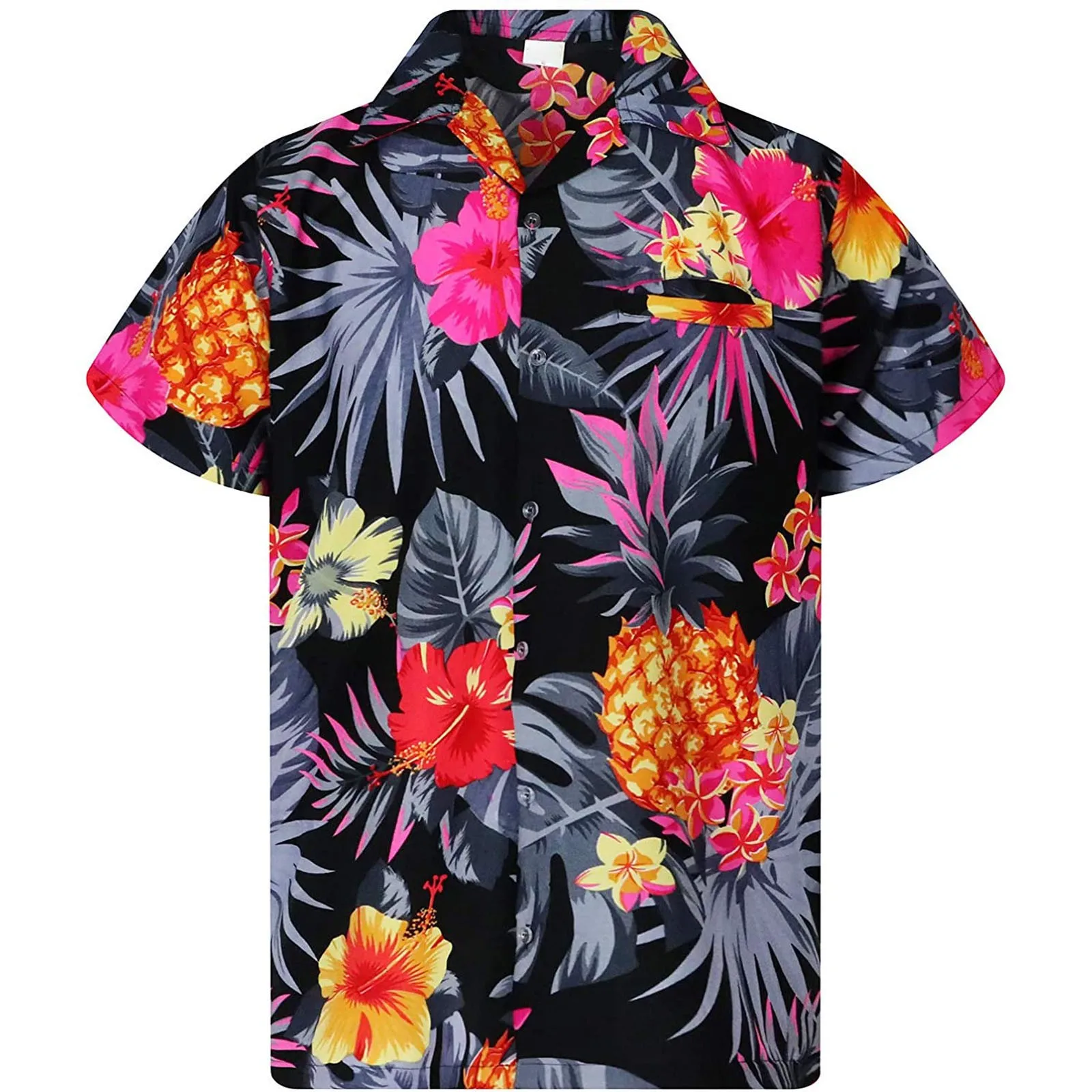 2021 мужские рубашки с принтом ананаса, Гавайские пляжные блузки с короткими рукавами, топы Camicia, повседневные мужские рубашки, новые мужские Рубашки, Топы
