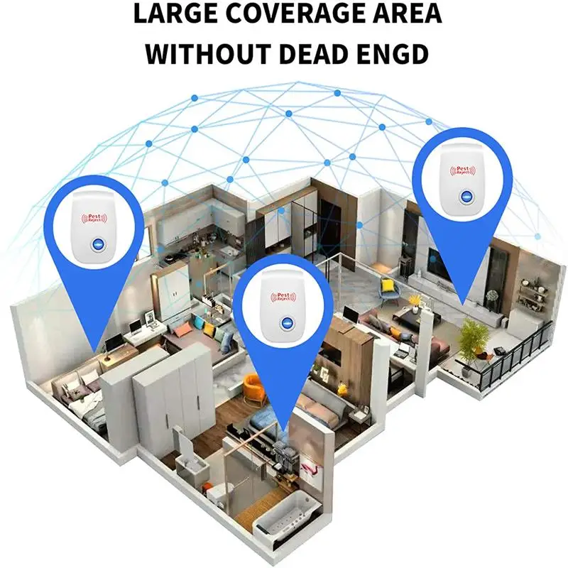 -Отпугиватель вредителей изготовлен по передовой ультразвуковой технологии, нетоксичен, безопасен и эффективен! Это не наносит вреда здоровью вашей семьи.