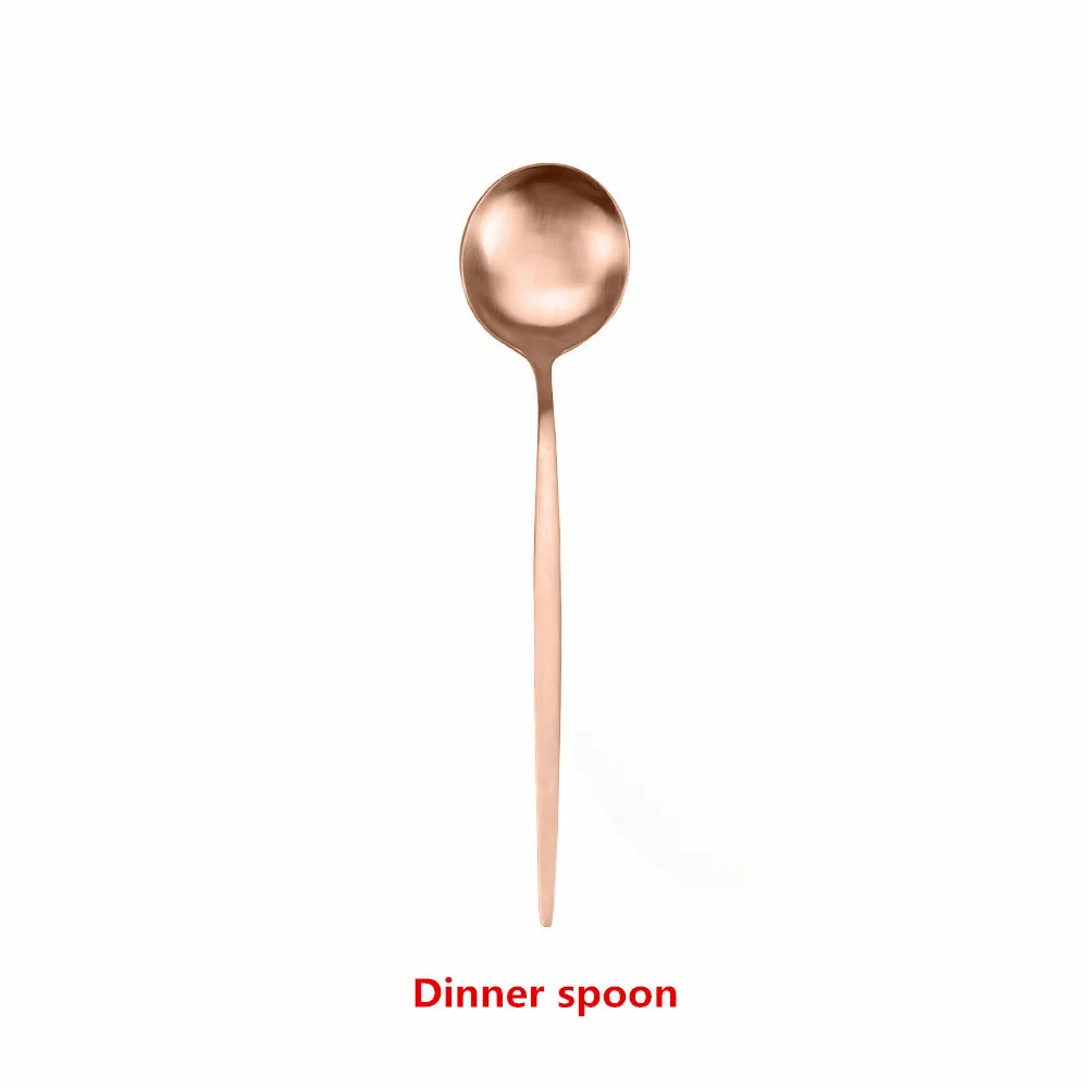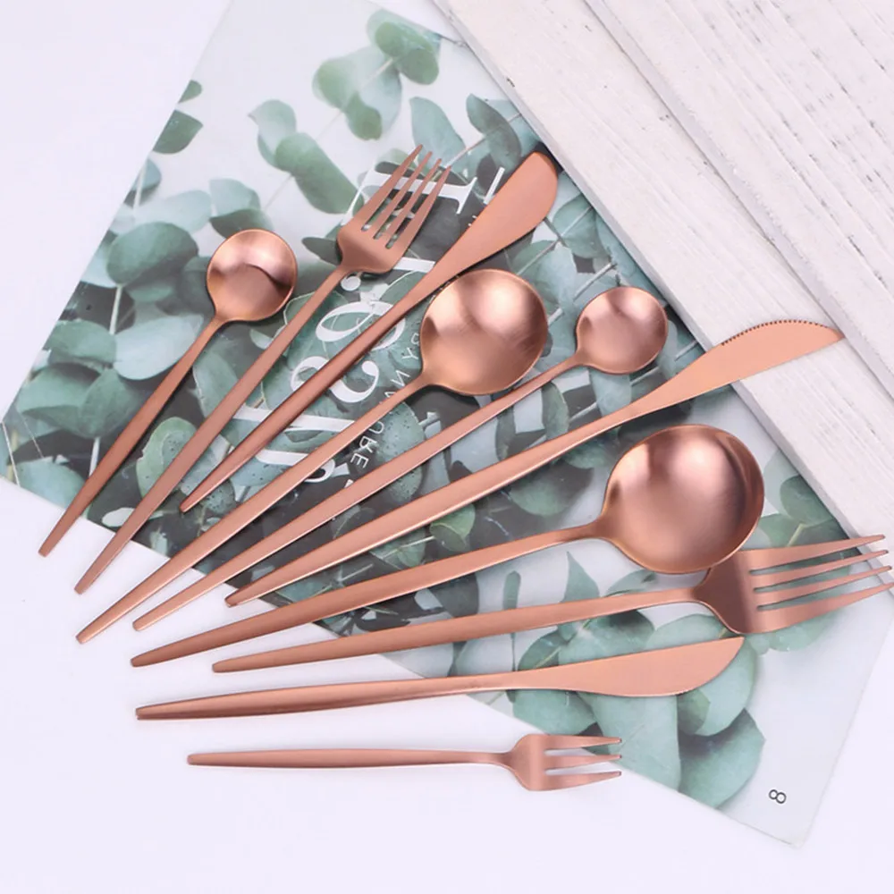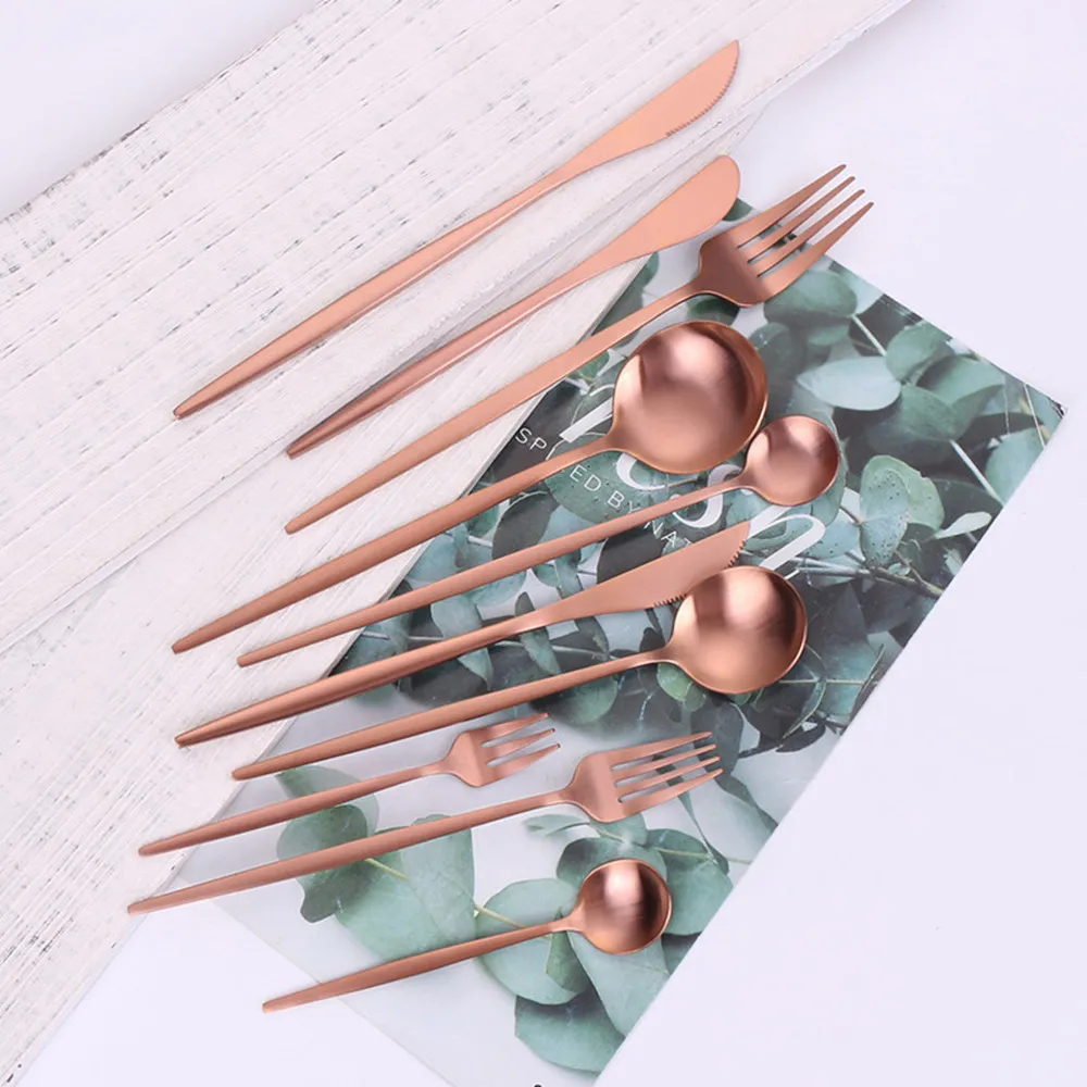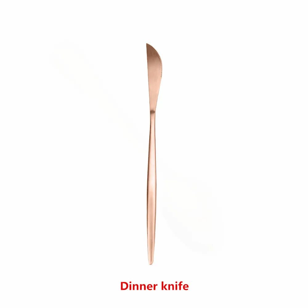 Stainless Steel Cutlery Set Matte Dinnerware Set 1Pc Rose Gold Cutlery Kitchen Fork Spoon Butter Knife Chopsticks Dessert ForkAbout products InformaionMade of high quality Stainless Steel material,dinnerware is sturdy and durable, anti-rust,frosted style.Easy to use and clean; Suitable for family party,outdoor picnics, hiking, trips and office use,also a great gift choice for your families and friends.About size Cutlery set Quantity length weight Dinner knife 1pc 8.66 in 41g Dinner fork 1pc 8.66 in 31g Dinner spoon 1pc 8.46in 41g Tea spoon 1pc 5.12 in 14g Tea fork 1pc 5.31in 12g Dessert knife 1pc 7.87in 34g Dessert fork 1pc 7.28in 21g Dessert spoon 1pc 7.28in 28g Ice spoon 1pc 7.87in 21g Butter knife 1pc 6.81in 28g Chopsticks 1pc 9.0in 32.4g About cleaningUse neutral detergent to flush it, Pls never use strong alkaline or strong oxidizing chemicals wash them.After cleaning your flatware, Please make it dry and keep the tableware clean and dry,Not recommended for use in the dishwasherAbout products servicesNEW-SN always here to help,If you have any problems with your purchase, please email us and we will respond in a timely manner.After receiving the items, if you have any problem contact us and we will solve the issue to your.NotesDue to the difference between different monitors, the pictures may not reflect the actual color of the item.Compare the detail sizes with yours, please allow slight difference due to manual measurement.Remind: This tableware is matte, the handle is flat, don't mind if you want to mirror, please consult the owner if you need a shiny surfaceFor Drop ShippingNote:We Do Dropshipping! offer Drop Shipping Service, do bulk CsV drop shipping.Will NOT Add Any Information of Our Store in the Package! No invoice, price tags or any promotion materials included.if you want to do whole or drop shipping, please feel free to contact with us whatsapp :8613182580311Choose us to enjoy a 100% high quality and exquisite of life!