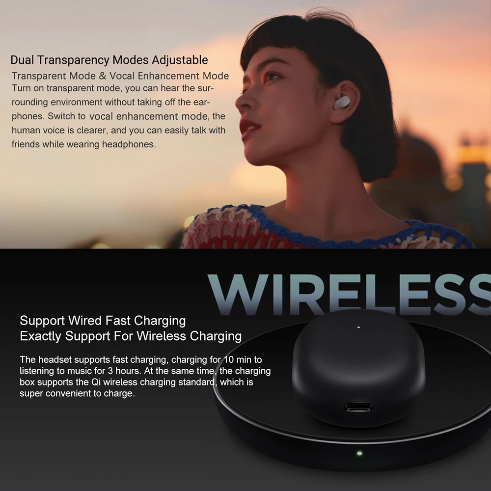 1. Прозрачный режим: все внешние звуки и четко передают их в уши. Прозрачный режим по умолчанию.