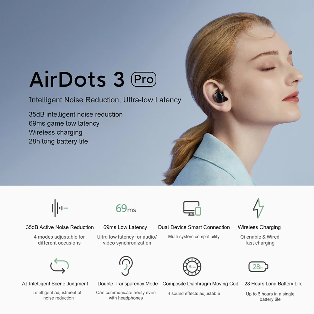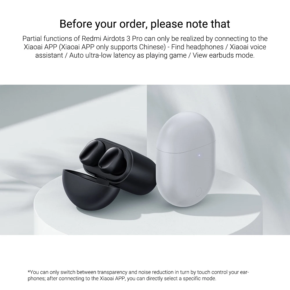 Частичные функции Redmi Airdots 3 Pro могут быть реализованы только при подключении к приложению Xiaoai (приложение Xiaoai поддерживает только китайский)-Найти наушники/голосовой помощник Xiaoai/Авто ультра-низкая задержка как игра/режим просмотра наушников.