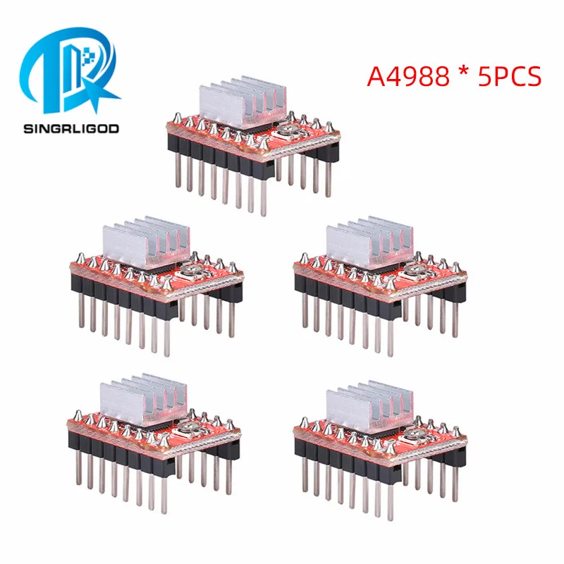 Модуль драйвера шагового двигателя A4988 с радиатором и радиатором, запчасти для 3D-принтера SKR V1.3 1,4 GTR V1.0 MKS GEN V1.4, 5 шт.