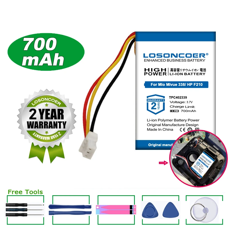 100% Оригинальный аккумулятор LOSONCOER 700 мАч TPC402339 для Mio Mivue 338, 358P, 658p,366, MiVue 388, для Papago HP F210 F310 J501 F200
