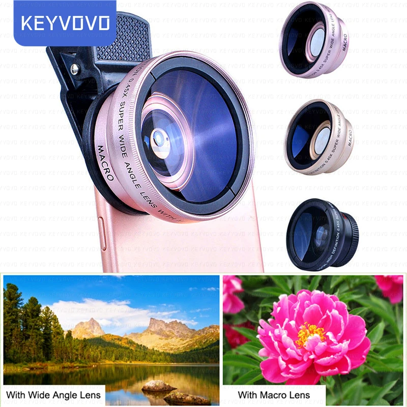 Фотообъектив с 2 функциями, супер широкоугольный объектив 0,45x и макро HD-камера 12,5x, универсальный зажим для iPhone, Xiaomi, Huawei, Samsung
