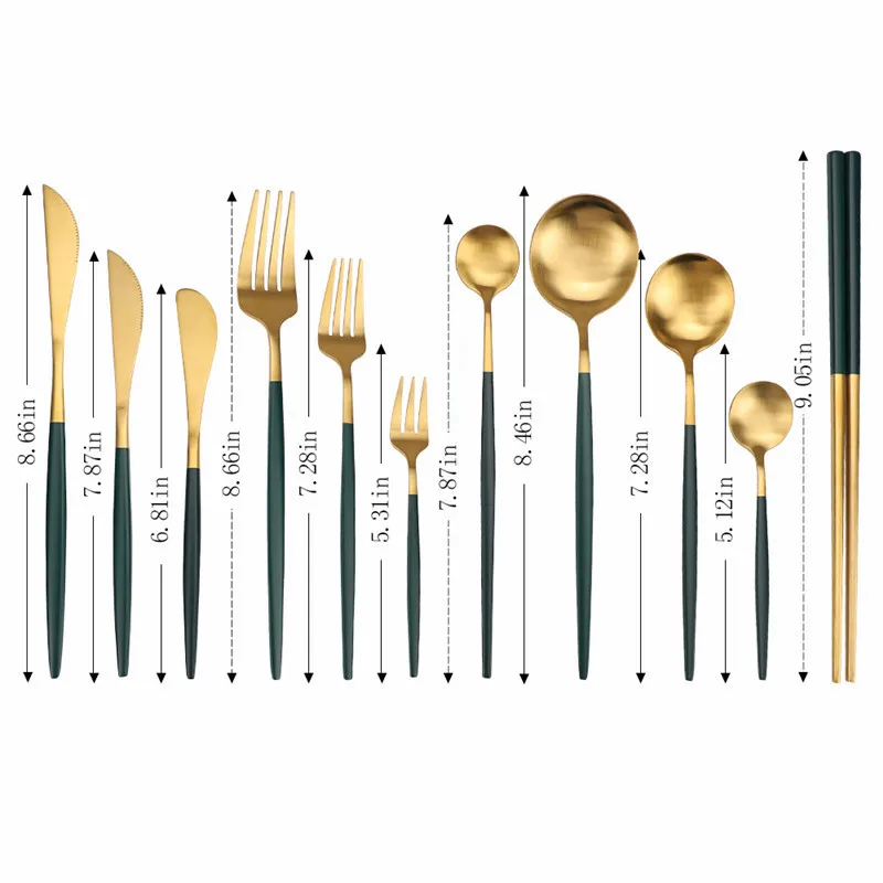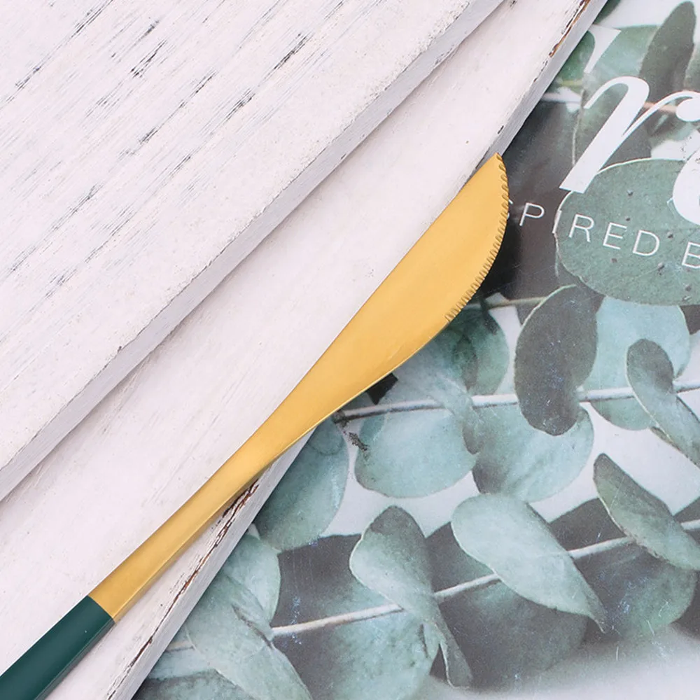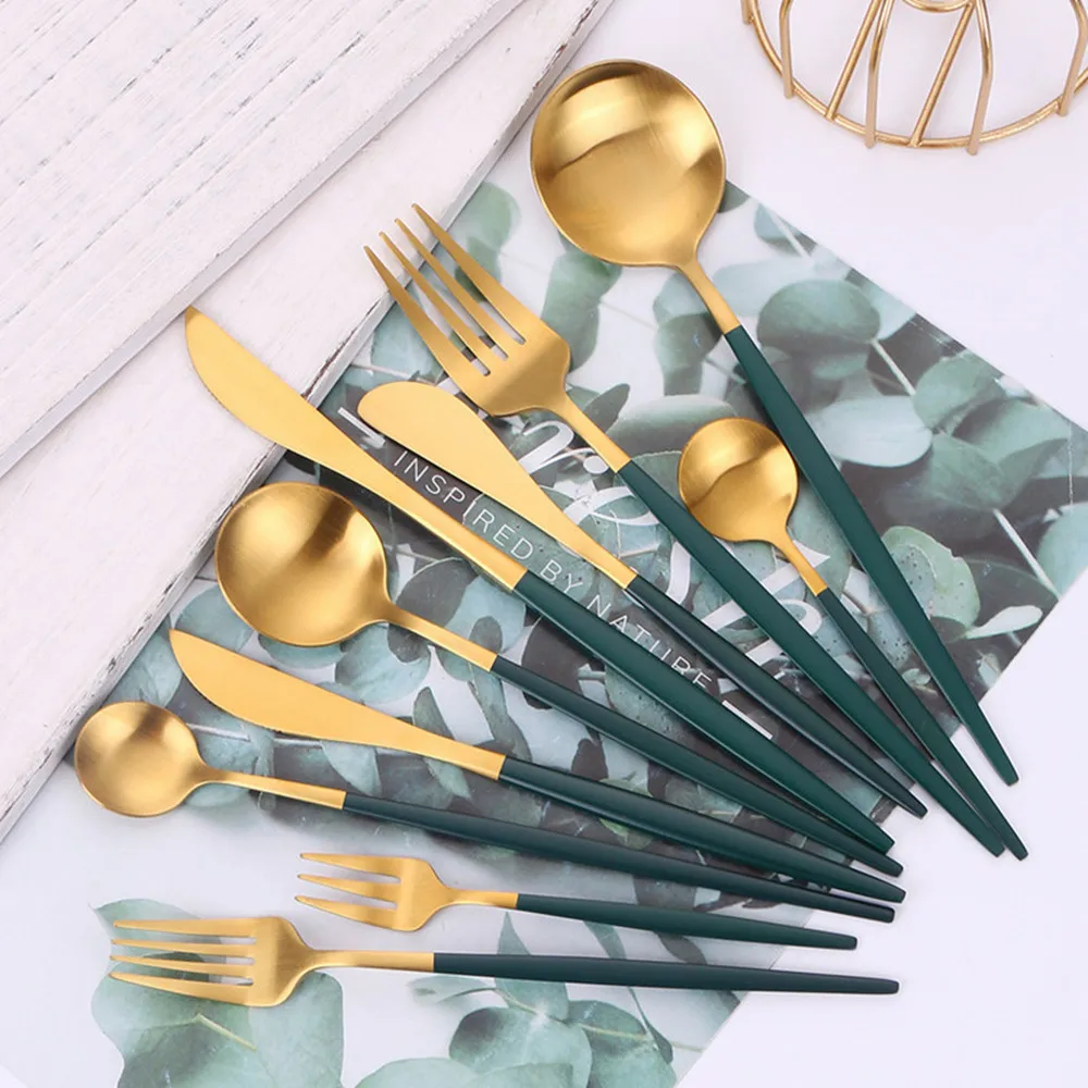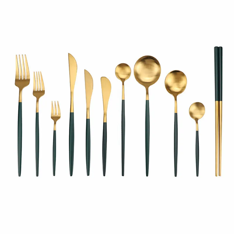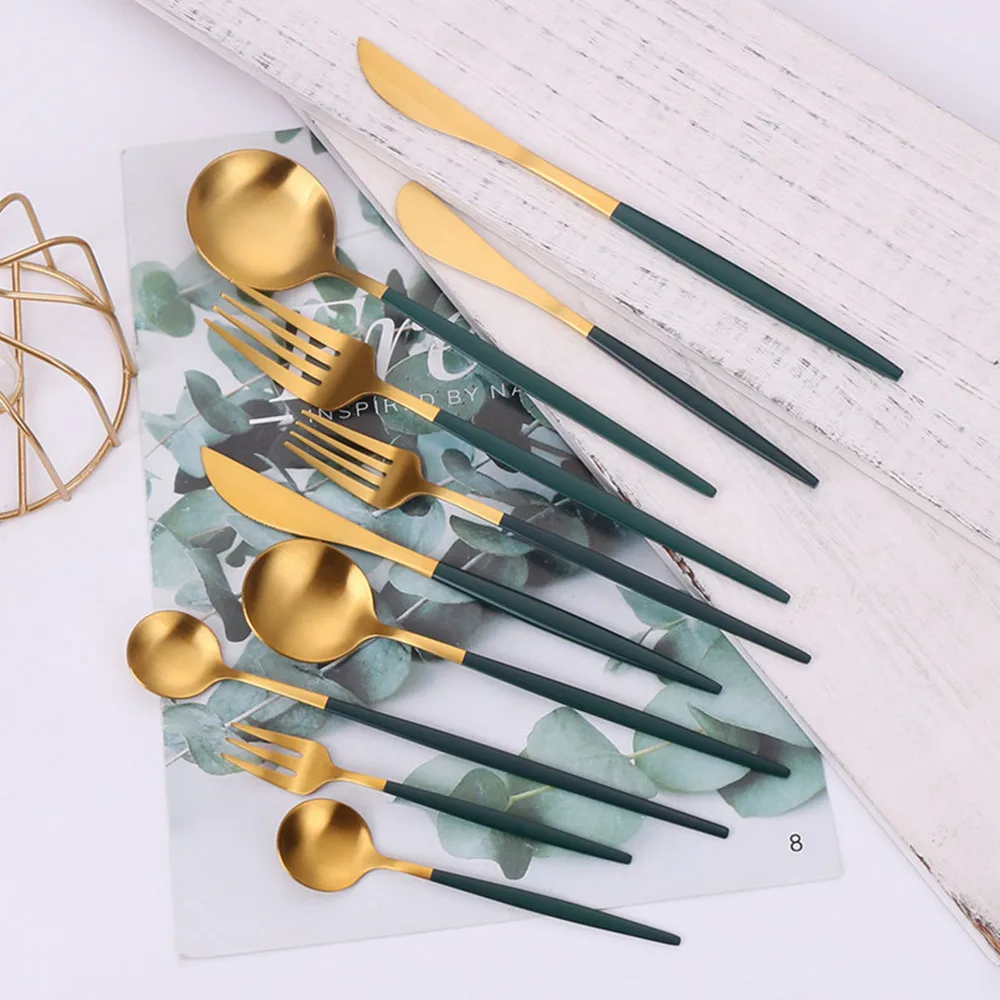 Набор матовой столовой посуды, столовый набор из нержавеющей стали зеленого и золотого цвета, ложка для ножа, кухонные палочки, столовые приборы, 1 шт.