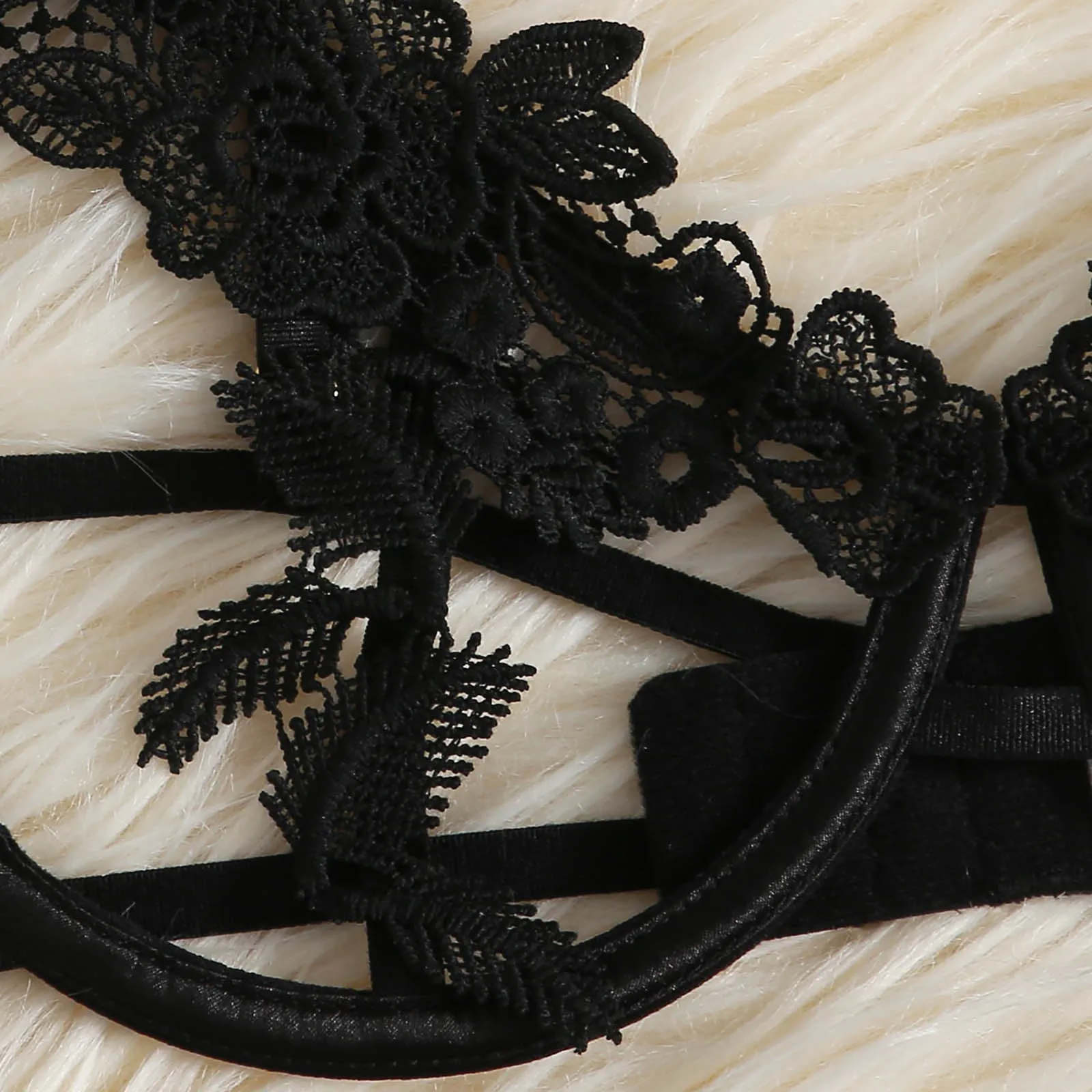 Комплект нижнего белья женский кружевной с вышивкой, Эротический бю...