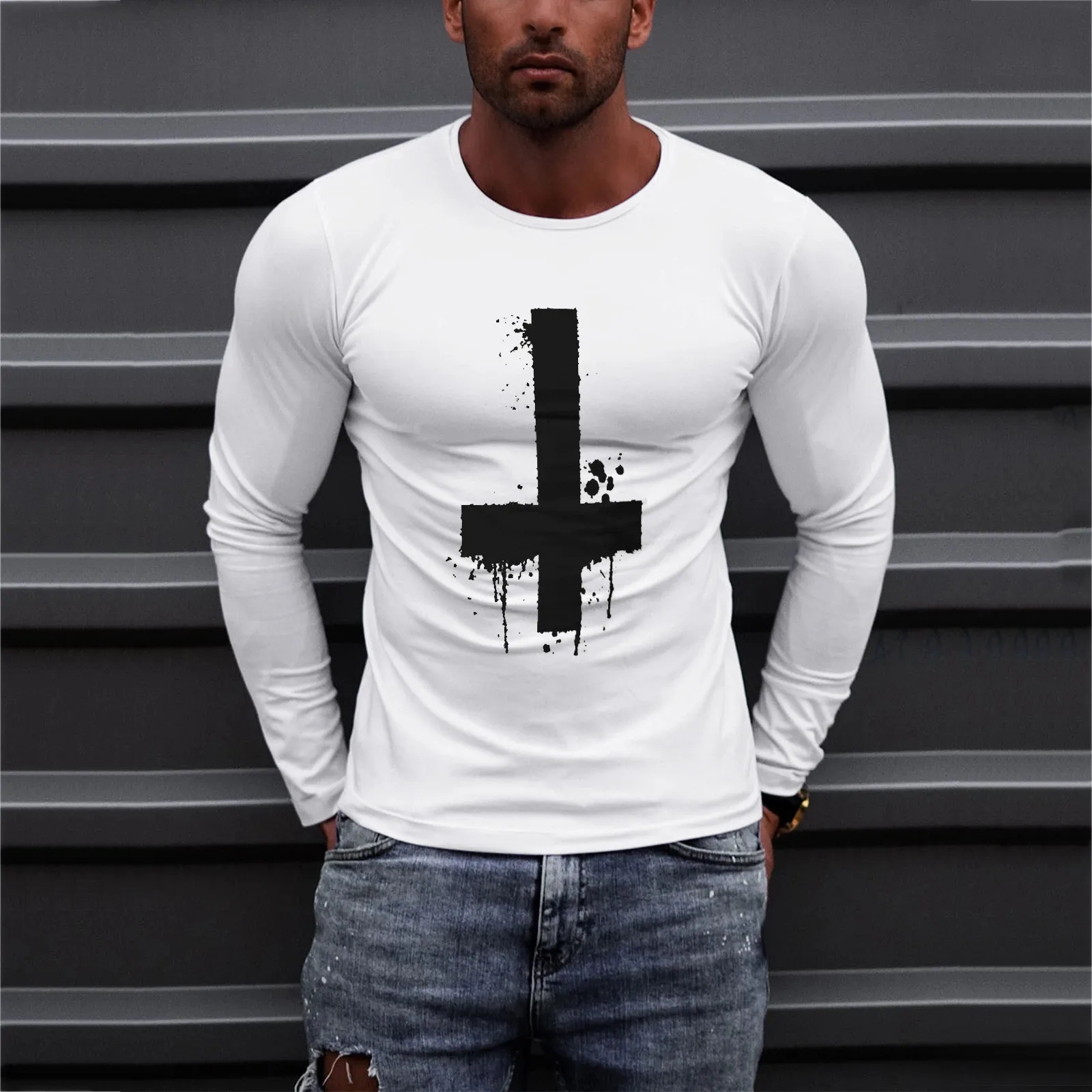 Мужская Футболка 40 #, Тонкая Повседневная Футболка с круглым вырезом и винтажным принтом, с длинным рукавом, топ, Спортивная мужская одежда большого размера