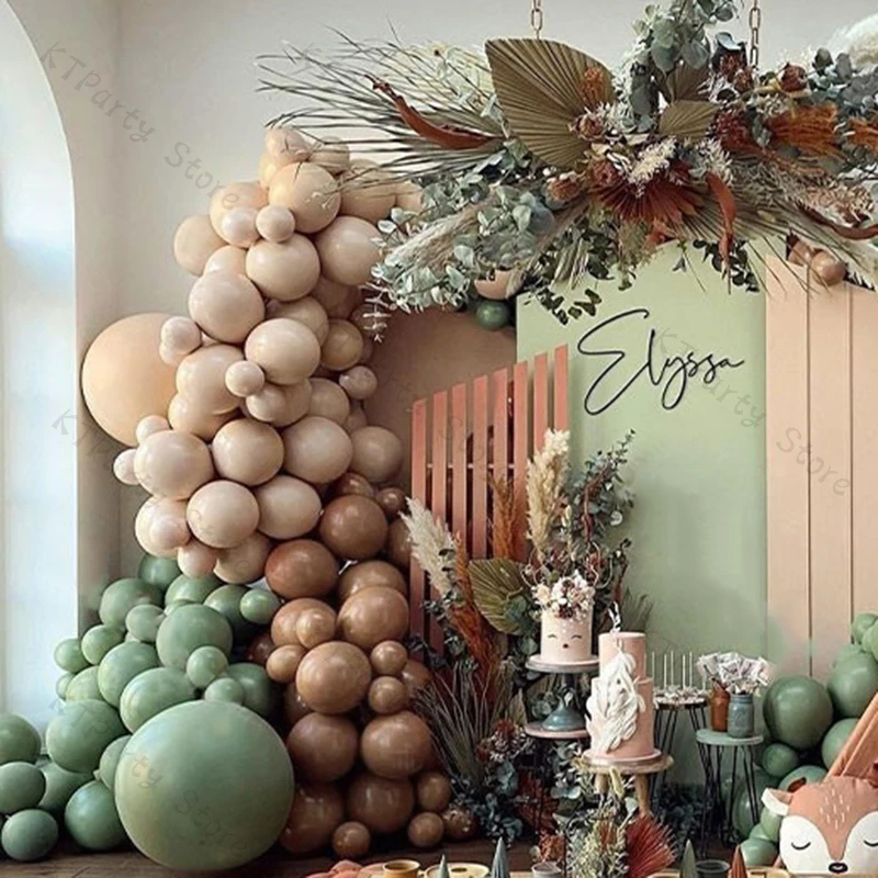 Двойные абрикосовые воздушные шары-гирлянды, арка, пол, раскрывает украшения, шалфей, зеленый кофе, свадьба, день рождения, вечеринка, детский душ, Декор