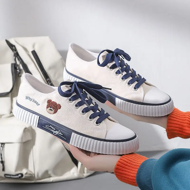 Женские холщовые кроссовки QWEEK Kawaii Bear, Спортивная дизайнерск...