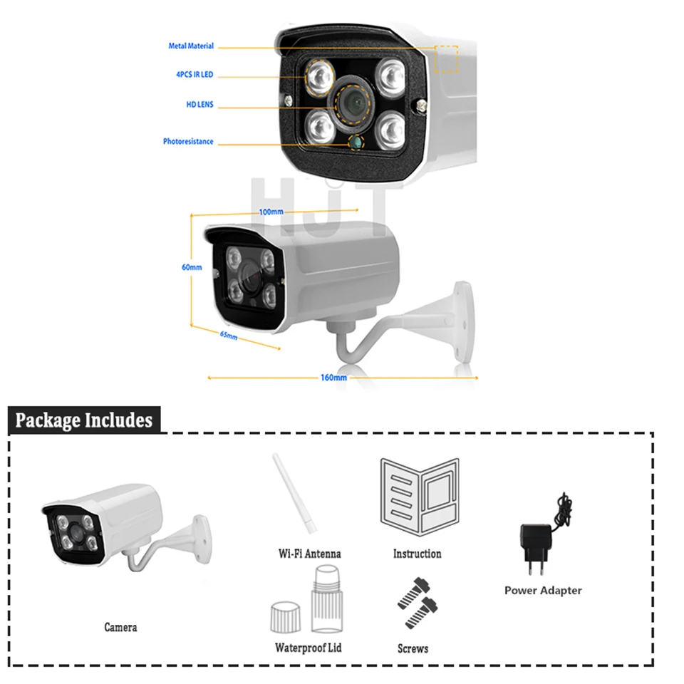 HJT H.264 1080P 2.0MP WIFI IP-камера со слотом для SD-карты CCTV Аудио-камера 4IR ночное видение Onvif 2,1 наружная Водонепроницаемая P2P металлическая