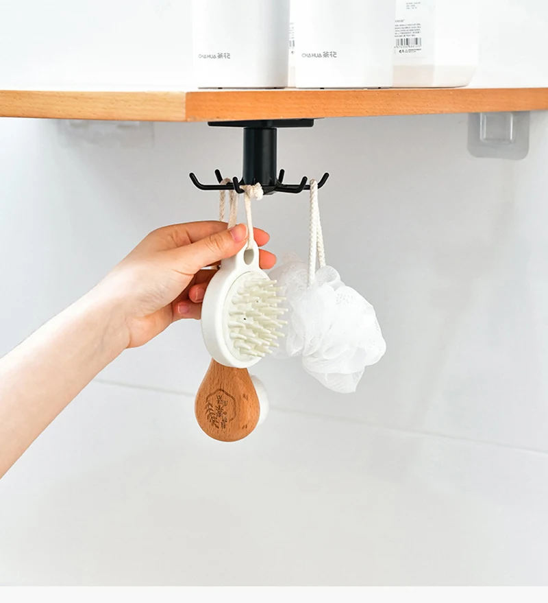 6 крючков, кухонный стеллаж для хранения 360 градусов, вращающийся крючок, самоклеющиеся кухонные крючки, вешалка для ванной комнаты
