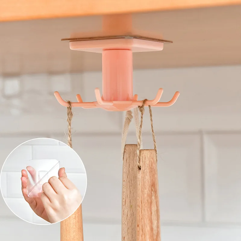 Самоклеящиеся кухонные крючки с вращением на 360 градусов, 6 крючков