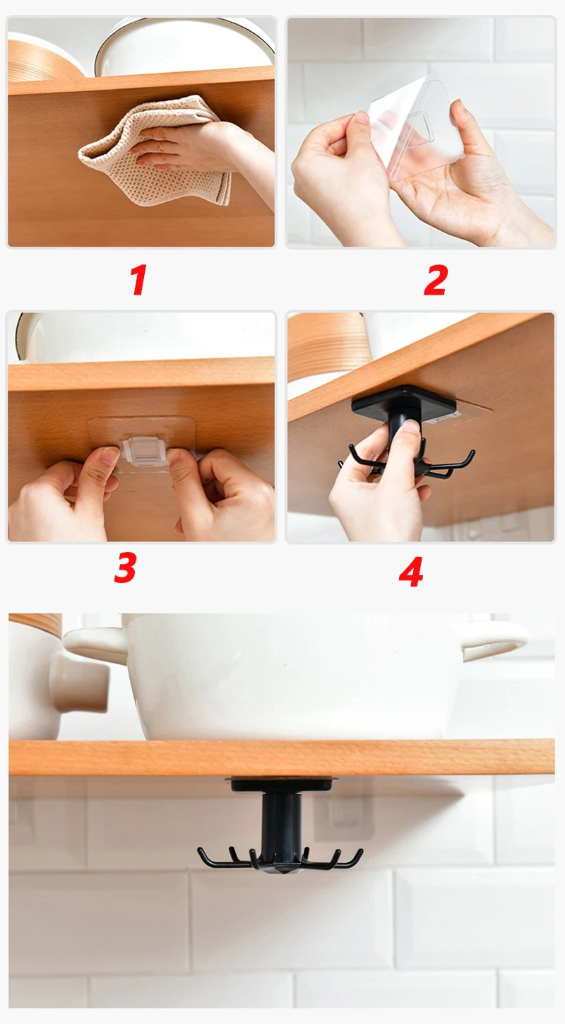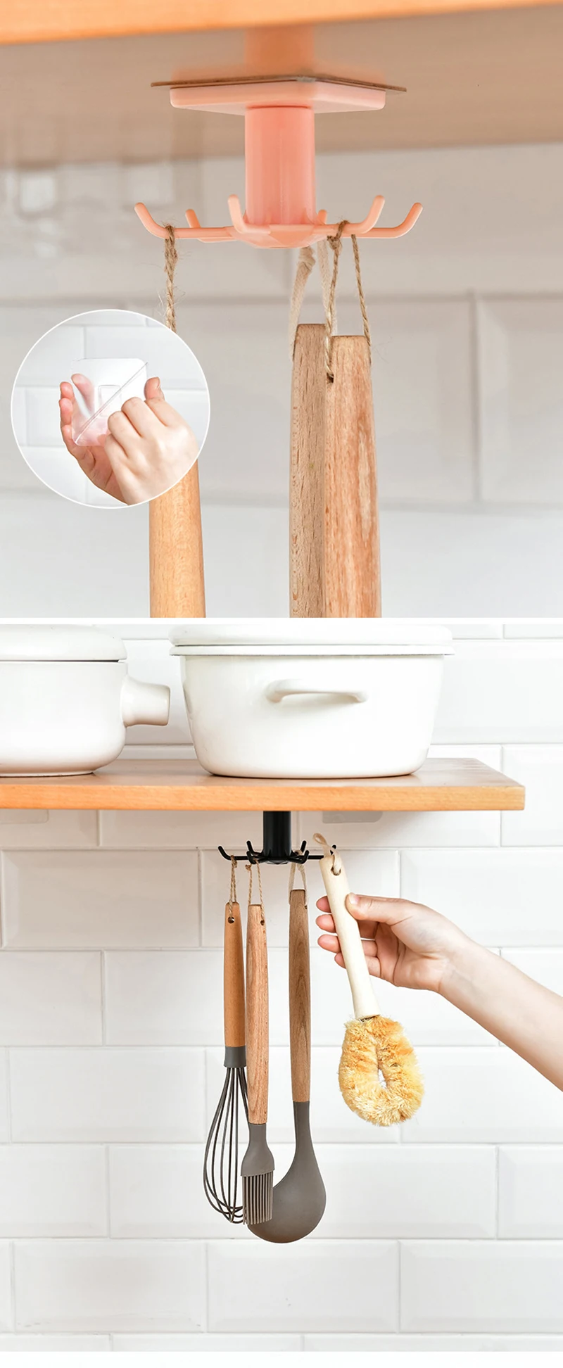 -360 градусов свободно вращающийся крюк, подходит для шкафа, Топы, верхняя часть кухни доски, очень удобно-4/6 крючков, можно повесить и хранить 4/6 продуктов одновременно, супер несущая способность-Самоклеющийся крючок, без следов, без повреждения стены