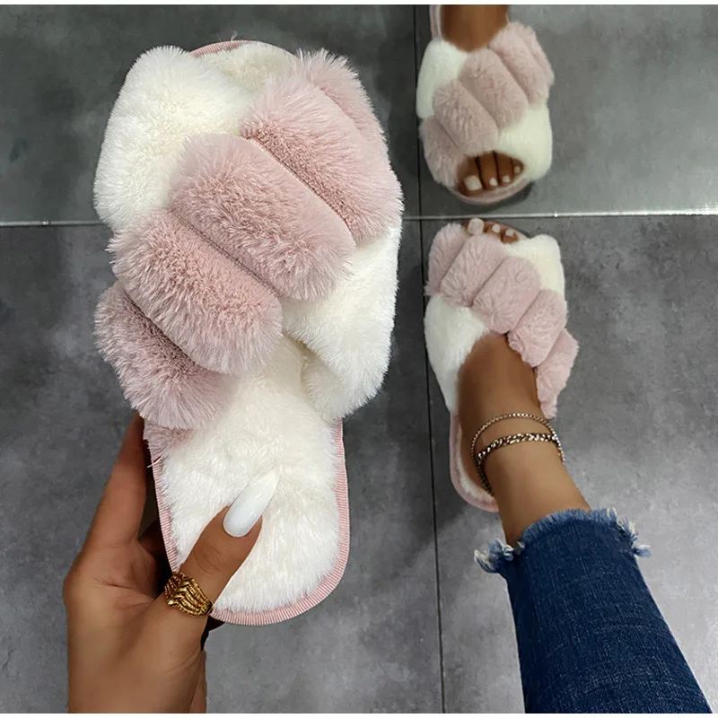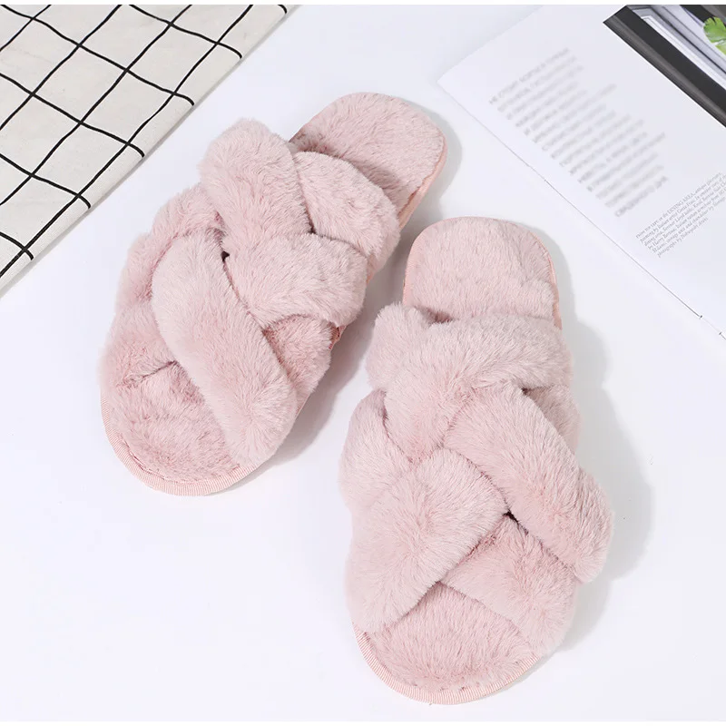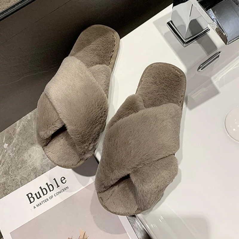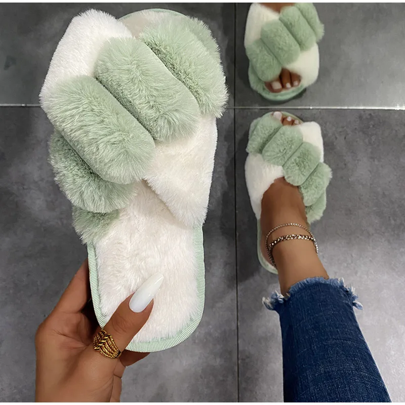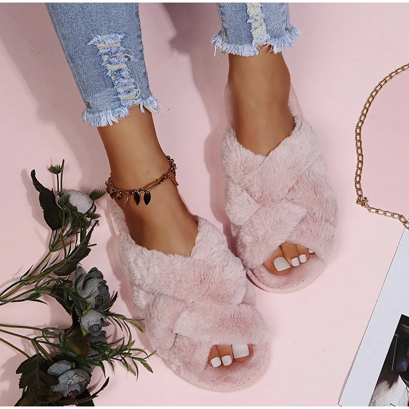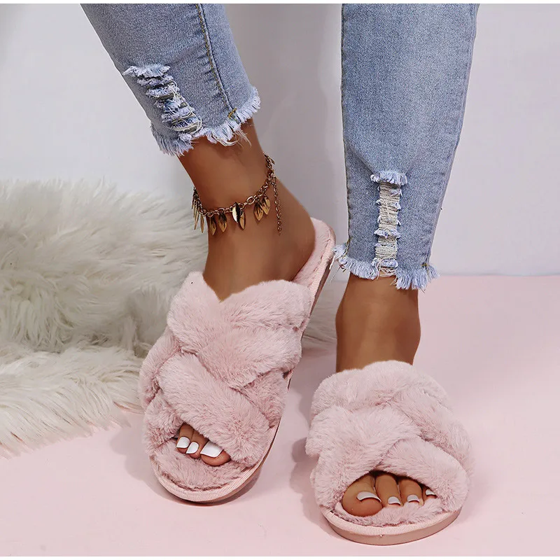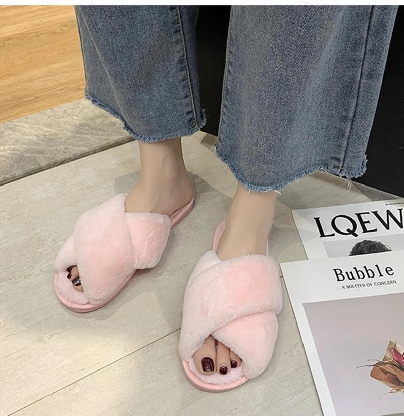 Женские теплые домашние тапочки, плюшевая обувь на плоской подошве, женские меховые домашние тапочки, зимняя обувь, женские шлепанцы