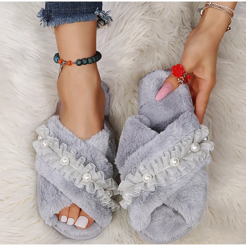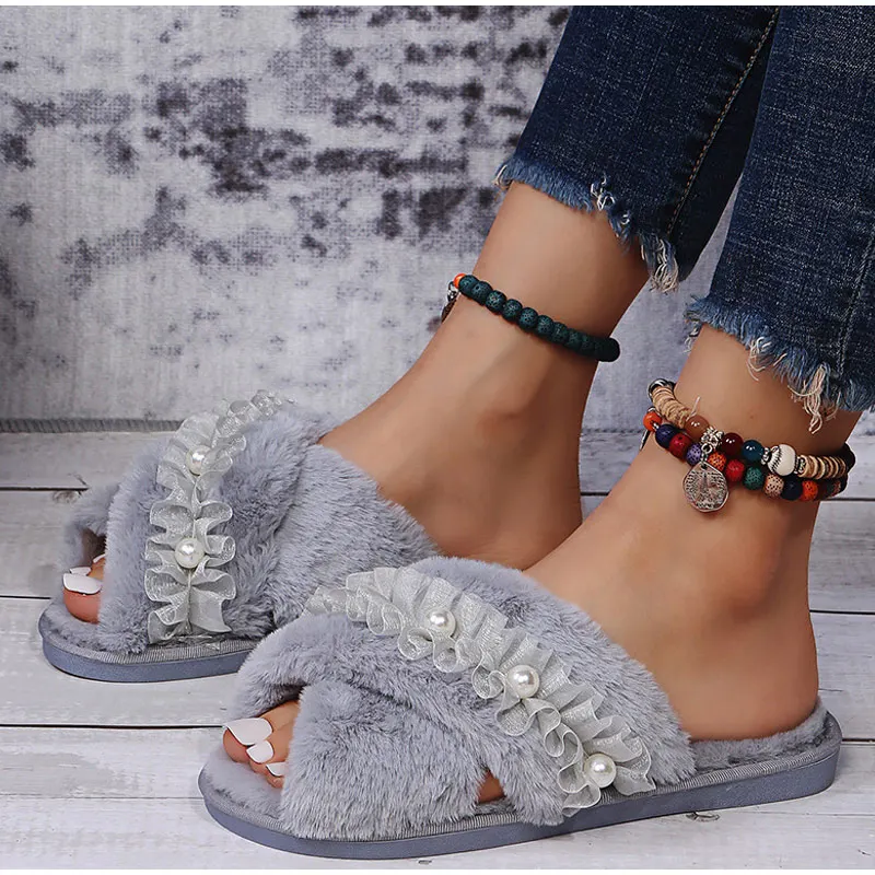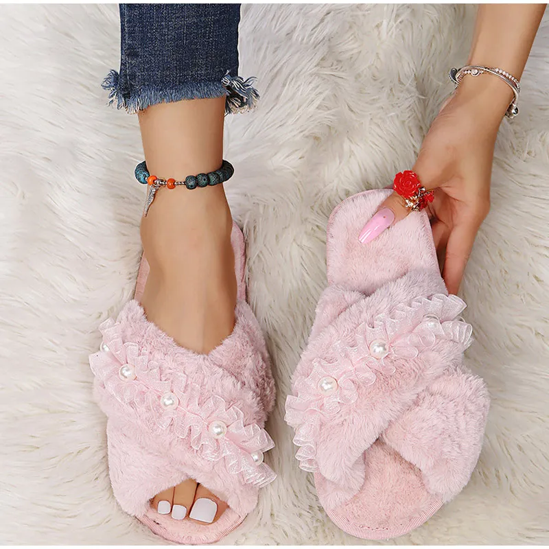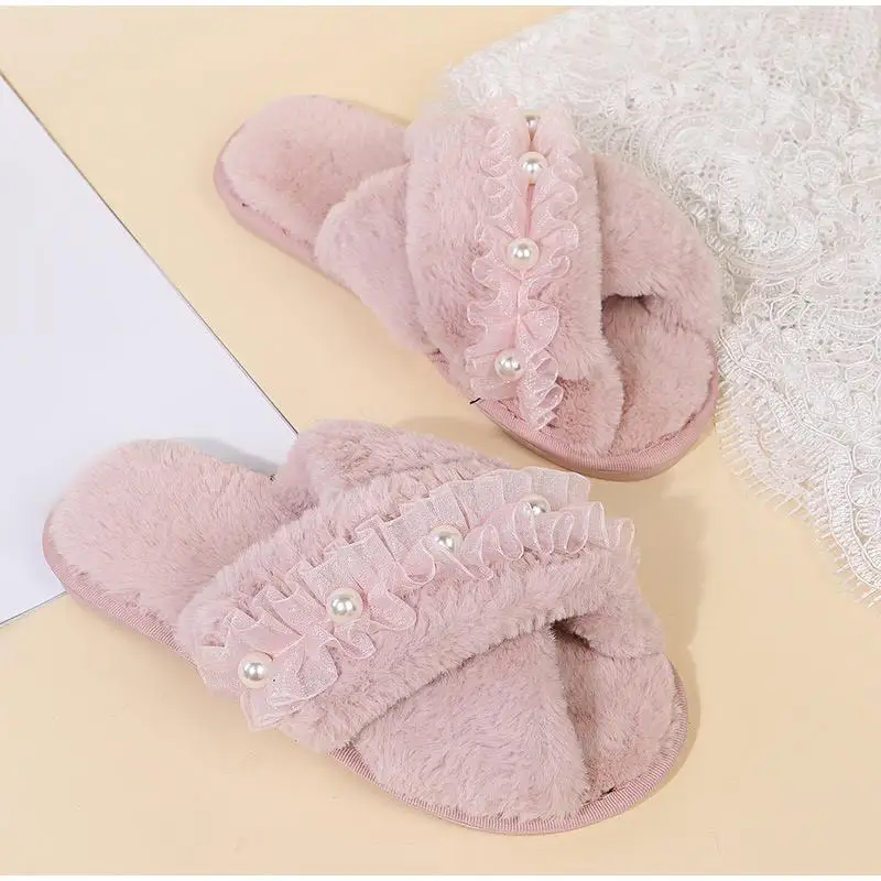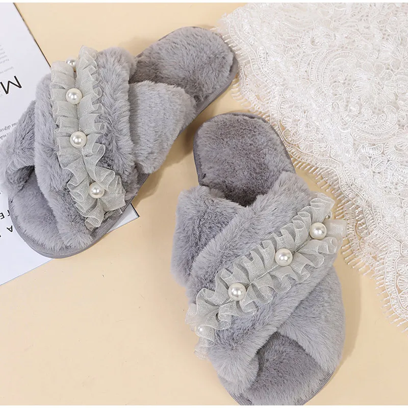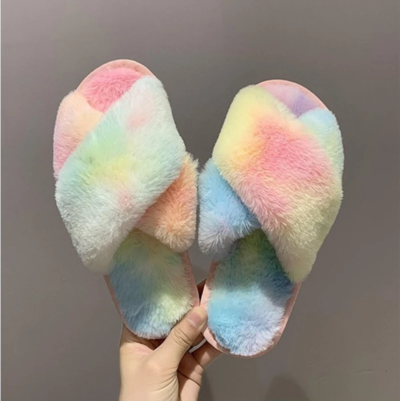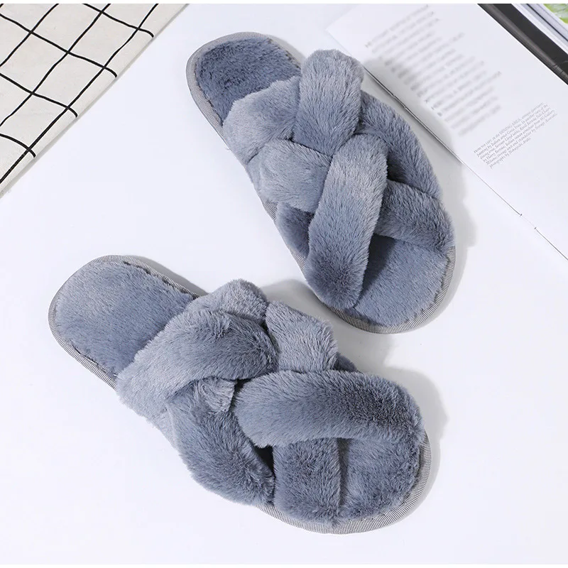 Женские теплые домашние тапочки, плюшевая обувь на плоской подошве, женские меховые домашние тапочки, зимняя обувь, женские шлепанцы