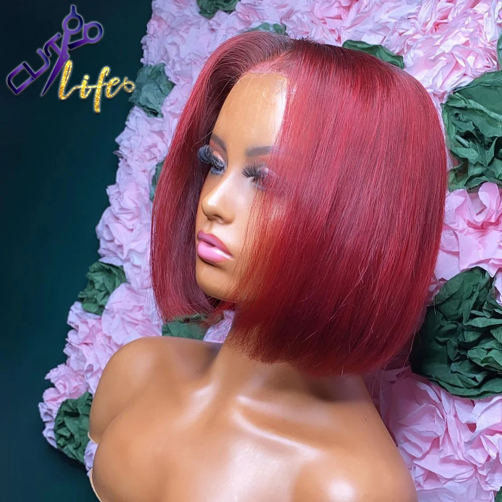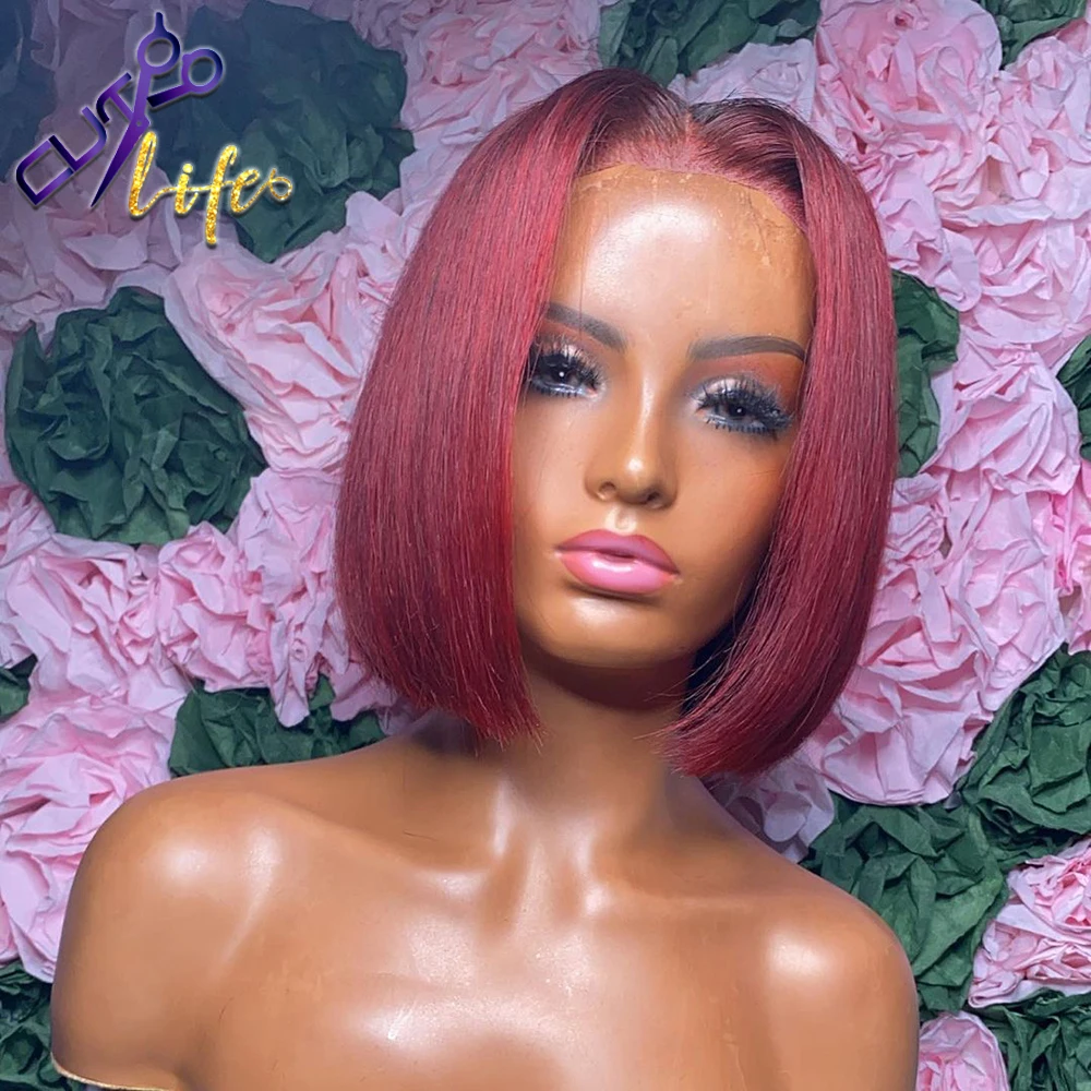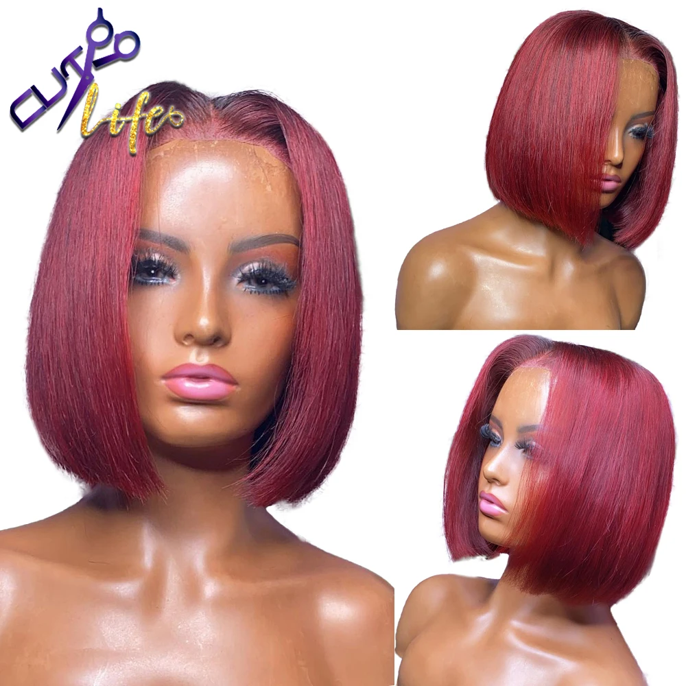 Прямые короткие парики боб бордовые парики из человеческих волос 13X 4 парики на сетке спереди предварительно выщипанные парики на сетке 4x4 парики для черных женщин парики без повреждений
