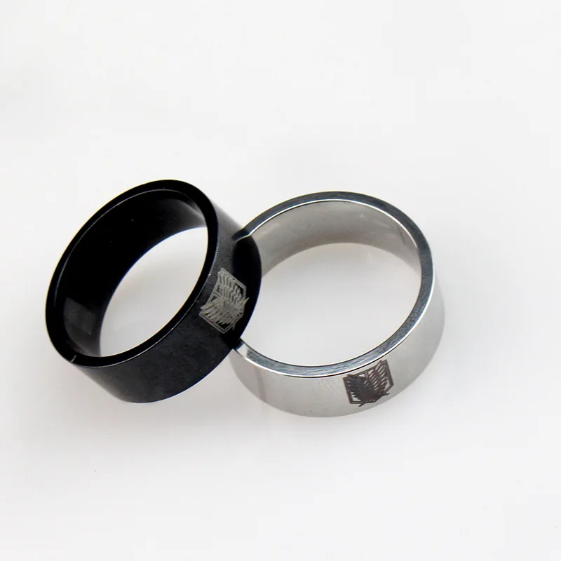 Аниме Атака Титанов, черное серебряное кольцо из нержавеющей стали, крылья флаг свободы, кольца на палец для мужчин, женщин и мужчин, ювелирные изделия, подарки для фанатов