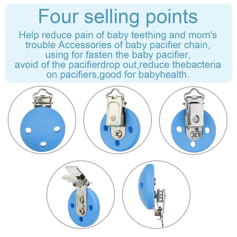 Бренд: TYRY.HUТовар: DIY соски цепи зажимыМатериал: силикон и нержавеющая стальВозраст: >4 месяцаВес: 15 г/шт.Цвет: Как показано/розовый, синий, фиолетовый, черный и т. Д...Использование 1: детские соски с цепочкамиИспользование 2: Детские молярные игрушки
