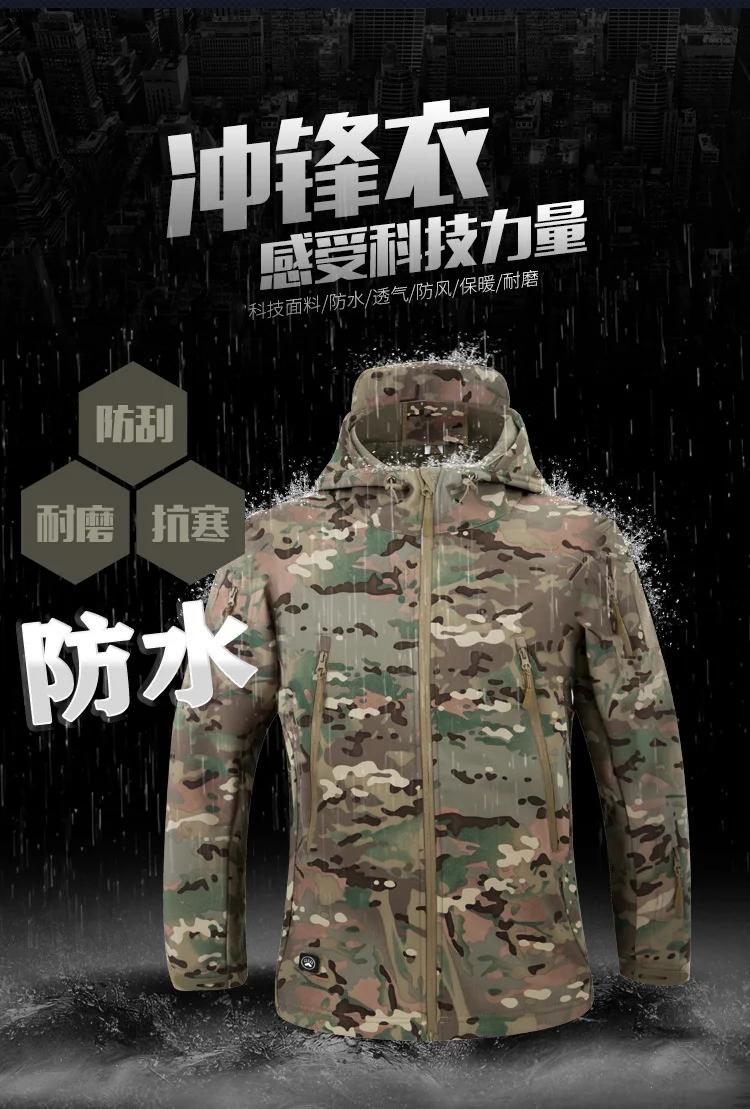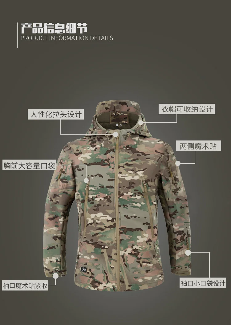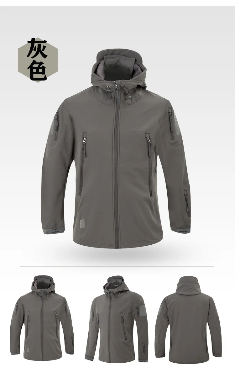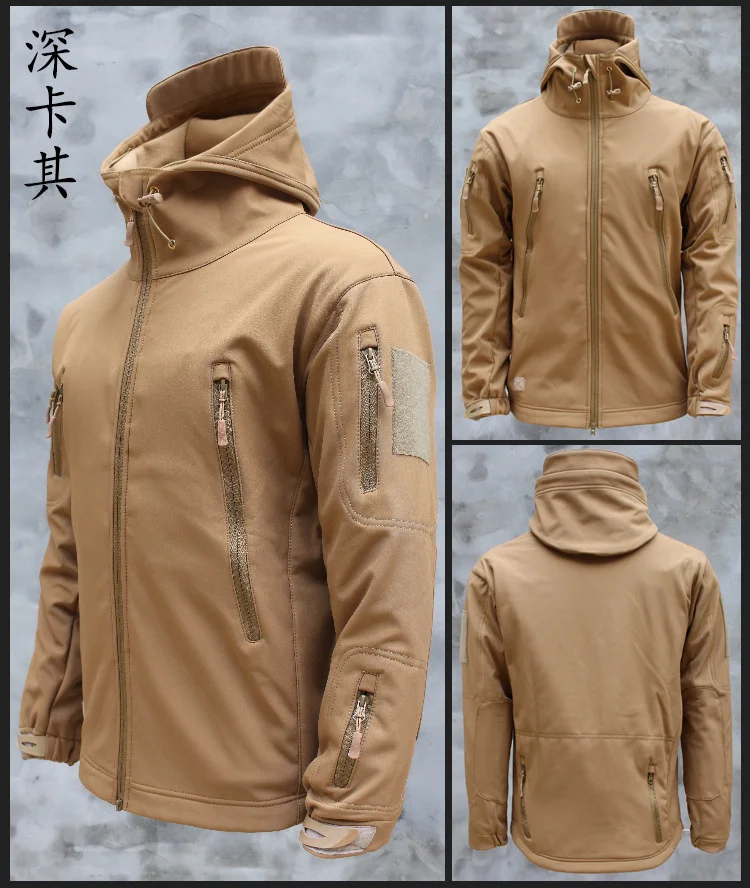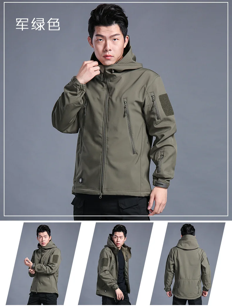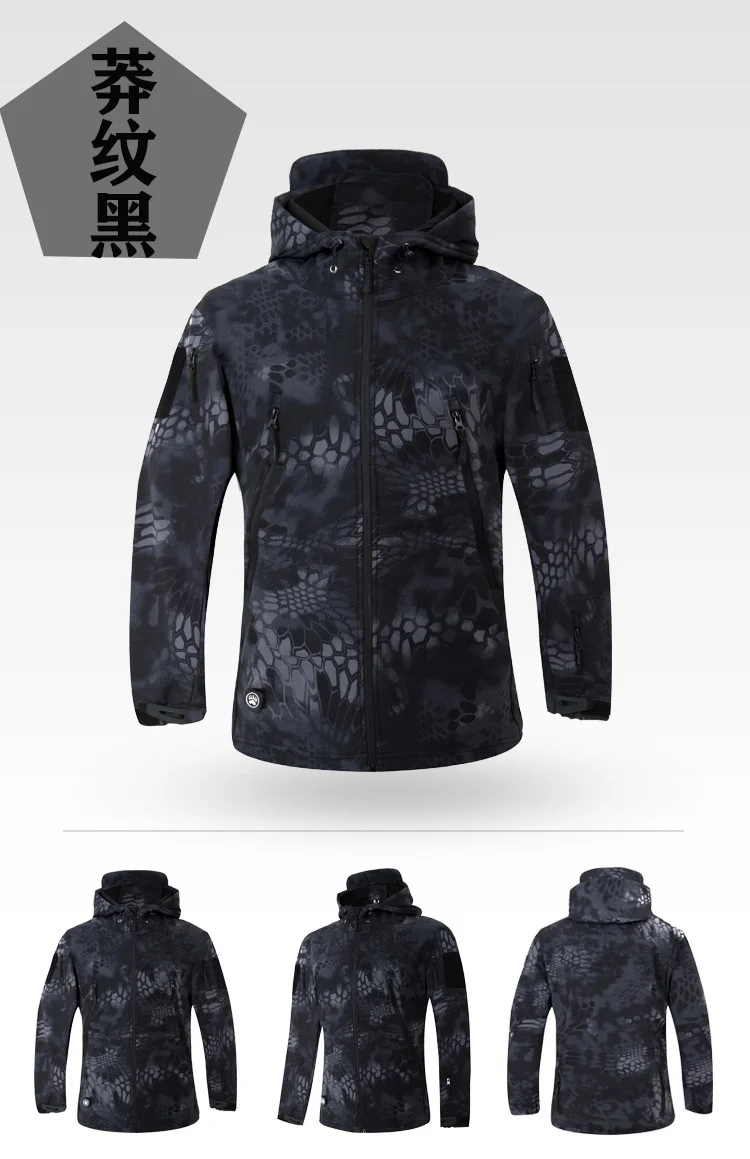Тактическая мужская куртка в стиле милитари из кожи акулы, мягкая оболочка, ветрозащитная водонепроницаемая куртка для мужчин, армейская Боевая Мужская куртка с капюшоном