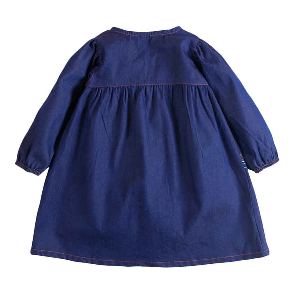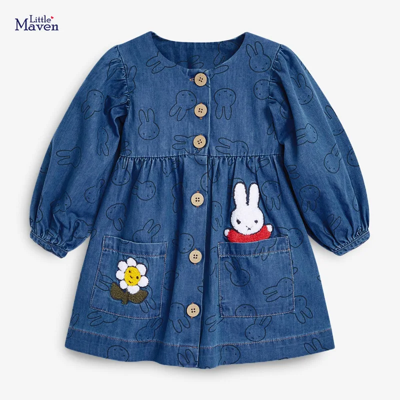 Платья для девочек; Осенняя одежда для малышей; Джинсовое повседневное хлопковое платье с аппликацией в виде единорога и радуги; Джинсовое платье для детей; От 2 до 7 лет