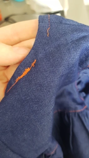 платье хорошее, качественное, но мне попалось с браком, машина частично "зажевала" строчку сзади на воротнике, а т.к. строчка выполнена оранжевыми нитками на дениме, это заметно и придется подправить. за это сняла звезду, спор открывать не стану. в магазине заказываю не в первый раз, все всегда хорошего качества и выполнения, иут видимо, не заметили...