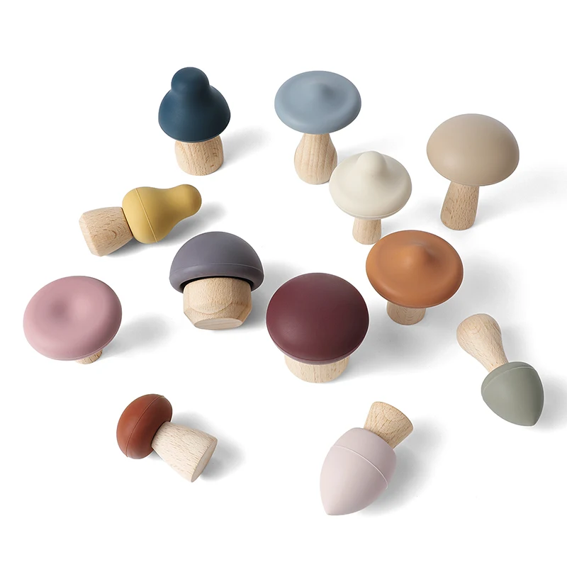 TYRY.HU, 12 шт., строительные блоки в виде грибов, силиконовые строительные блоки, деревянные Прорезыватели для зубов пищевого класса, игры для укладки, развивающая игрушка