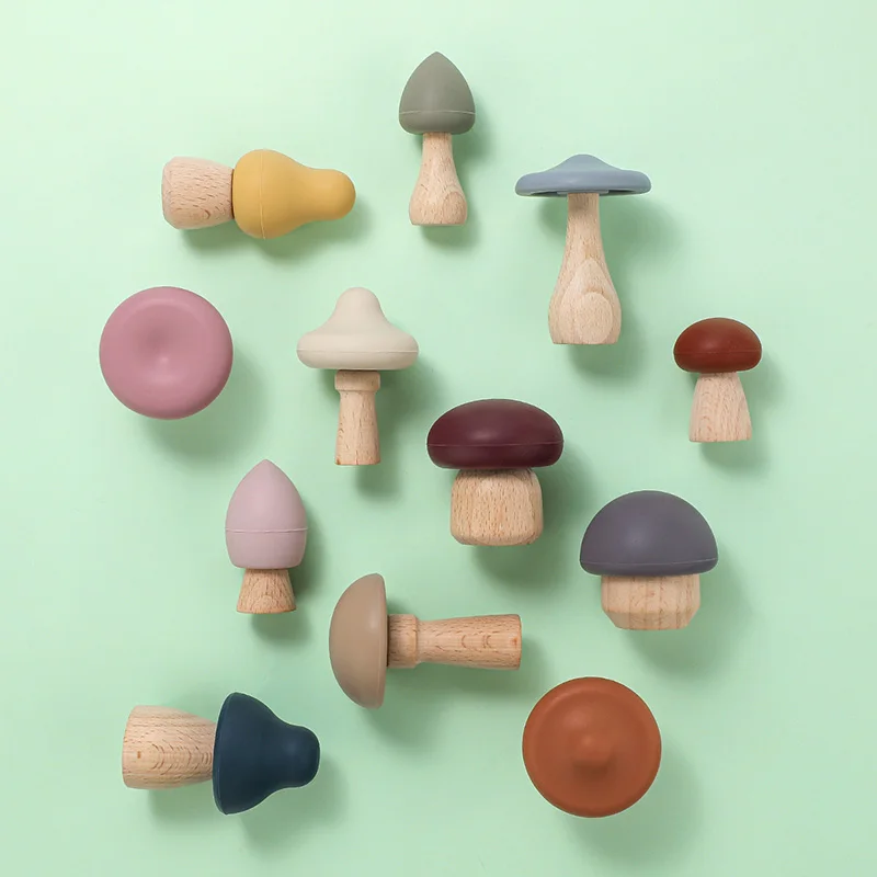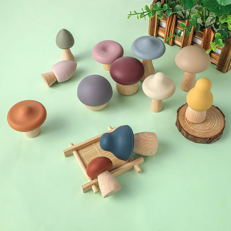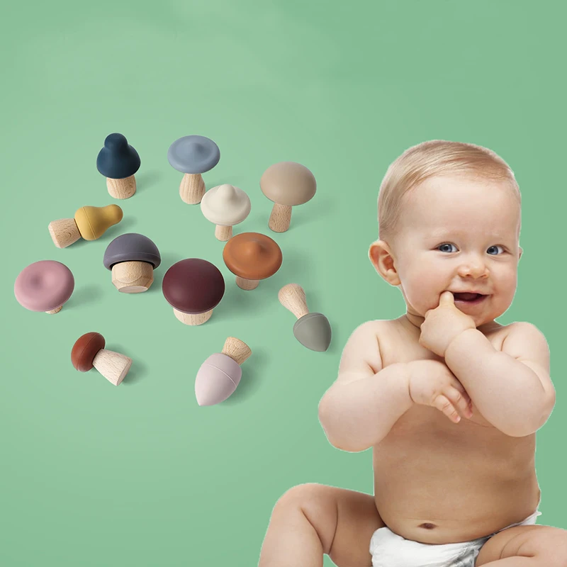 TYRY.HU 12 шт грибные строительные блоки силиконовые детские игрушки грызунки деревянный пищевой Прорезыватель укладка баланс игра обучающая игрушка