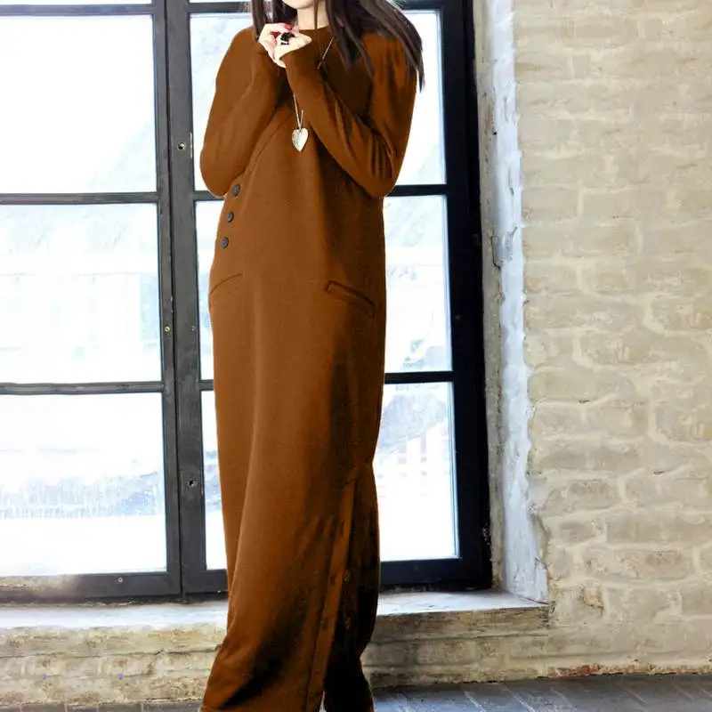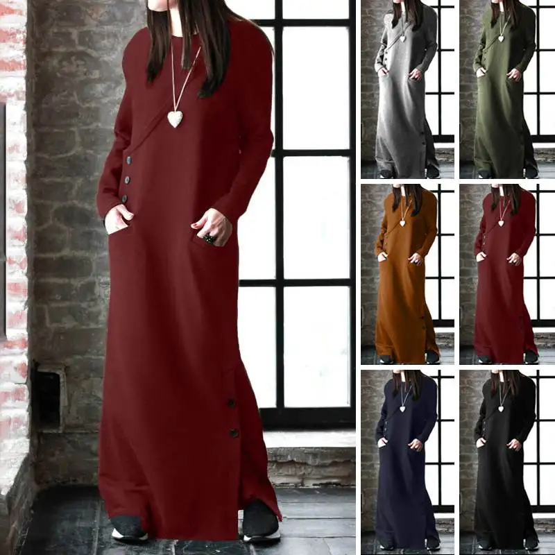 Женское платье-свитшот Celmia, Зимние флисовые толстовки с длинным рукавом, повседневные пуловеры с круглым вырезом, длинные платья макси на пуговицах, 2021