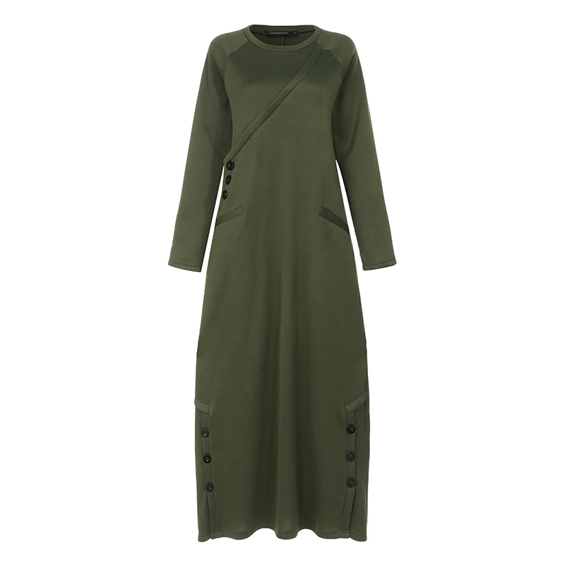 Женское платье-макси на пуговицах, с флисовой подкладкой