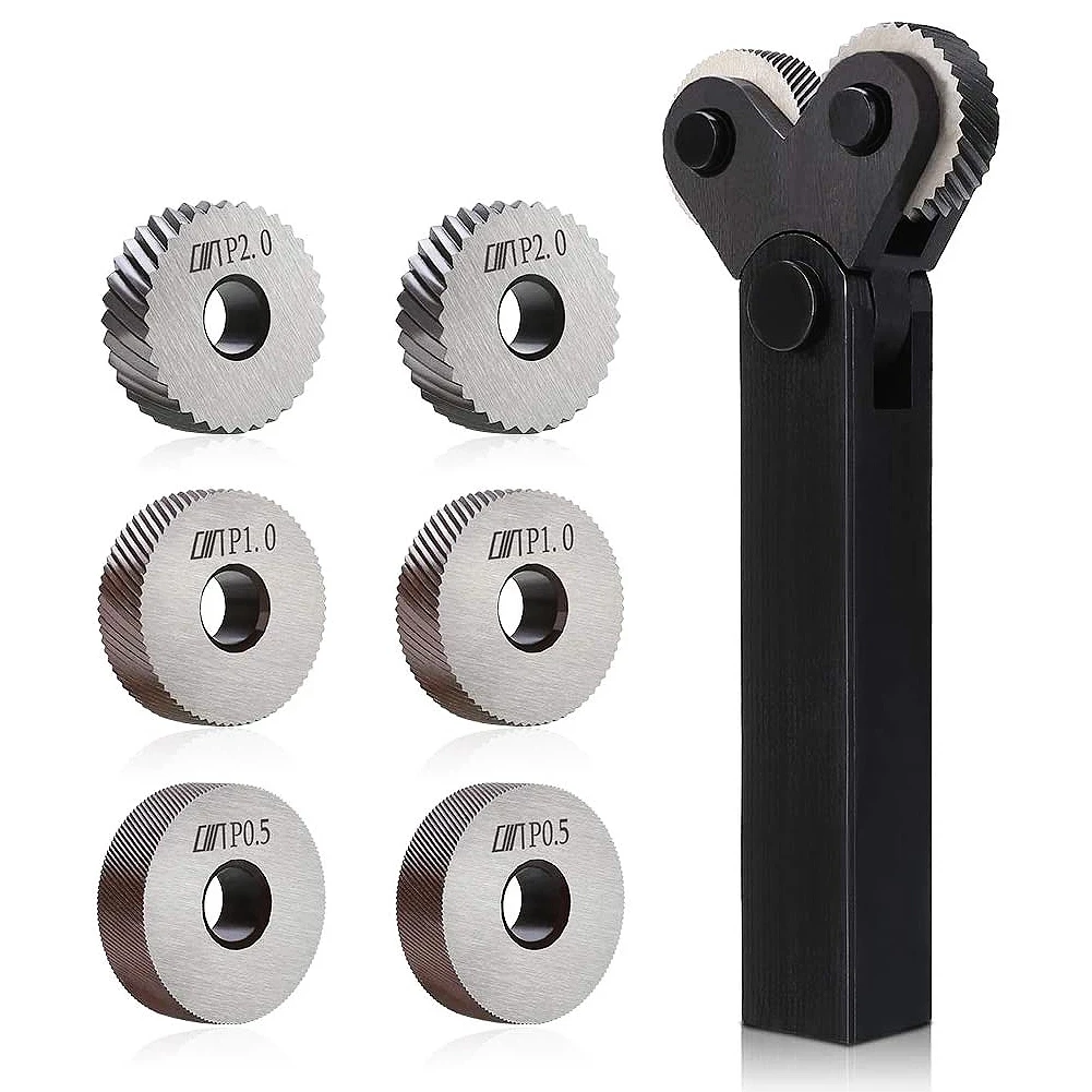 Onnfang 7 шт. инструмент для накатки 0,512 мм, диагональный двухколесный линейный набор накатки, стальной токарный станок, резак, колесный инструмент для накатки, держатель, набор варочной панели