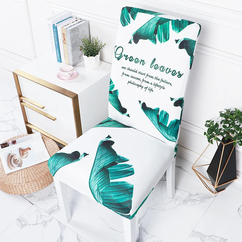 Чехол на стул с рисунком зеленых растений для столовой, кухни, свадьбы, эластичный чехол на стул с рисунком из спандекса