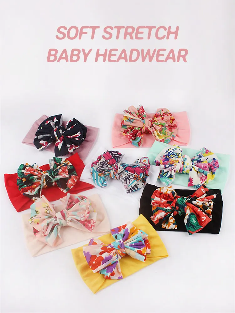 Детский головной убор широкие повязки для волос с большим цветочным бантом Детские аксессуары для волос мягкие эластичные повязки для волос для девочек головной убор