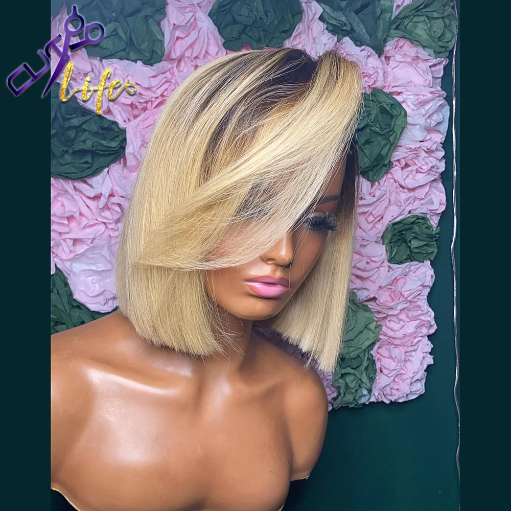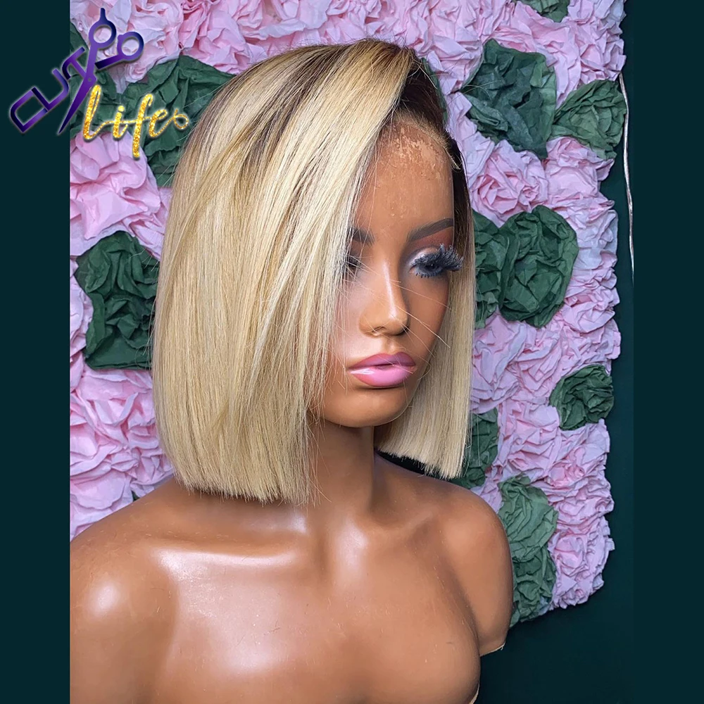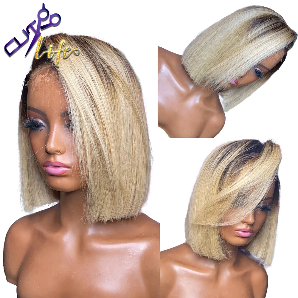 Парик блонд 1BT613 короткий Боб дешевый парик 4x4 парик на сетке волнистый парик с вырезами фальшивой бразильский парик прямые человеческие волосы парики для женщин