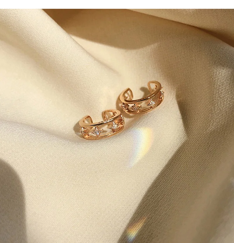Женские клипсы для пирсинга, маленькие, круглые, золотые, со звездо...