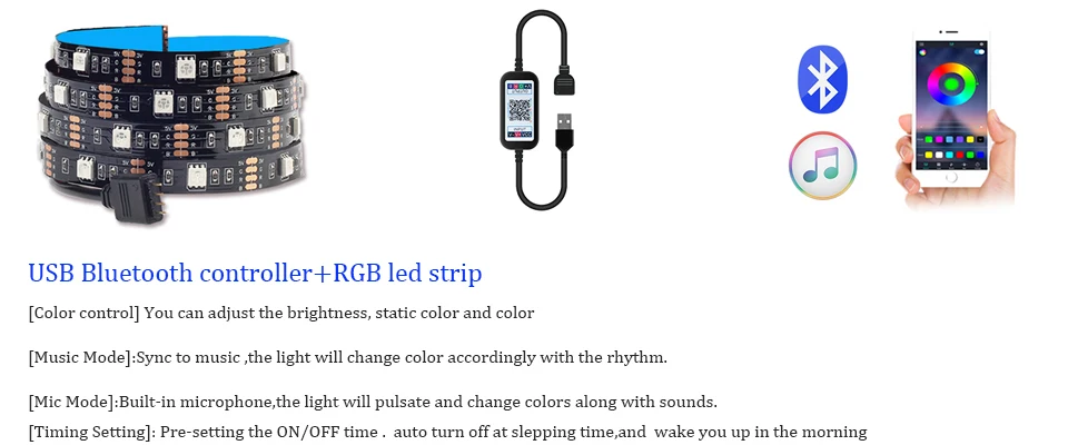 Спецификация:Тип светодиодный Светодиодная лентаНапряжение: 5 В постоянного токаВодонепроницаемый: не водонепроницаемыйСветодиодный да: SMD 5050Цвет светильник: RGBОсобенности:Гибкая светодиодная лента RGB создает новые и захватывающие яркие цветные световые эффекты, которых раньше было невозможно достичь.Идеально подходит для освещения бухт, ламбет, полок или шкафов, а также для коммерческого применения, демонстрации продуктов, под встречным освещением эта Светодиодная лента поставляется счетчиком в нескольких различных цветах, С внутренним или внешним рейтингом.Работает от любых устройств с выходом USB-порта 5 В, таких как компьютер, рабочий стол, ноутбук, планшет, планшет, автомобильный прикуриватель. И т. Д.Экологически чистый, без излучения, без мерцания, без вреда для глаз человека.Энергосбережение, отсутствие тепла, низкое энергопотребление, стабильная производительность.Эта лента поставляется с самоклеющейся подложкой 3 м для легкого нанесения практически на любую чистую поверхность.Модель 1. ИК-контроллер USB 24 клавиши + светодиодная лента RGB(Батарея в комплект не входит)Вы можете настроить яркость, статические настройки и эффекты изменения цвета с помощью пульта дистанционного управления2. Набор мини-контроллеров USB с 3 клавишами + светодиодная лента RGBМини-контроллер с 3 кнопками: режим-изменение режима светодиодного освещенияСкорость -- изменение частоты мигания светильникЦвет -- изменение цвета 3.USB-контроллер Bluetooth + светодиодная лента RGB[Управление через приложение] Управляйте светодиодсветильник полосой через приложение, дистанционное управление и управление. С помощью приложения вы можете свободно выбирать и контролировать цвет. Светосветильник панель Bluetooth имеет интеллектуальный музыкальный режим, который может создавать романтическую, расслабляющую вечерние чную атмосферу через музыку. Цвет светильник меняется в зависимости от музыки. [Светодиодная лента с регулируемой яркостью] этот комплект светодиодных лент RGB содержит 300 высококачесветодиодный Дов с диммером и регулировкой яркости. Вы можете выбрать из 28 динамических режимов, таких как «мерцание», «дыхание», «стробоскоп», «Градиент», «охлаждение» и так далее. Вы также можете сделать свои собственные уникальные цвета самостоятельно, я думаю, это сделает вечерние более захватывающей. Использование двухслойной меди на печатной плате может сделать смешанные цвета более однородными. [Удобно] Светодиодные индикаторы синхронизации музыки с функцией памяти. При повторном использовании тест-полоски они запомнят настройки последнего режима вместо повторения настройки. Защита окружающей среды, экономия денег и отсутствие радиации. Его можно разрезать один раз между каждыми 3 бусинами, чтобы вы могли отрегулировать их до подходящей длины. [Доступно множество сцен] его можно использовать для украшения ресторанов, спален, наверху, кухонь, портье, компьютерных столов, рождественских елок, баров и гостиных, особенно подходит для рождества, Хэллоуина, вечеринки и другие фестивали и мероприятия. Это идеальный подарок для вашей семьи и друзей. [Настройка времени]: настраиваемая функция таймера позволяет выбирать время и дату для включения и выключения света. Вам никогда не придется беспокоиться о том, забудете ли вы выключить светильник, и установите врем