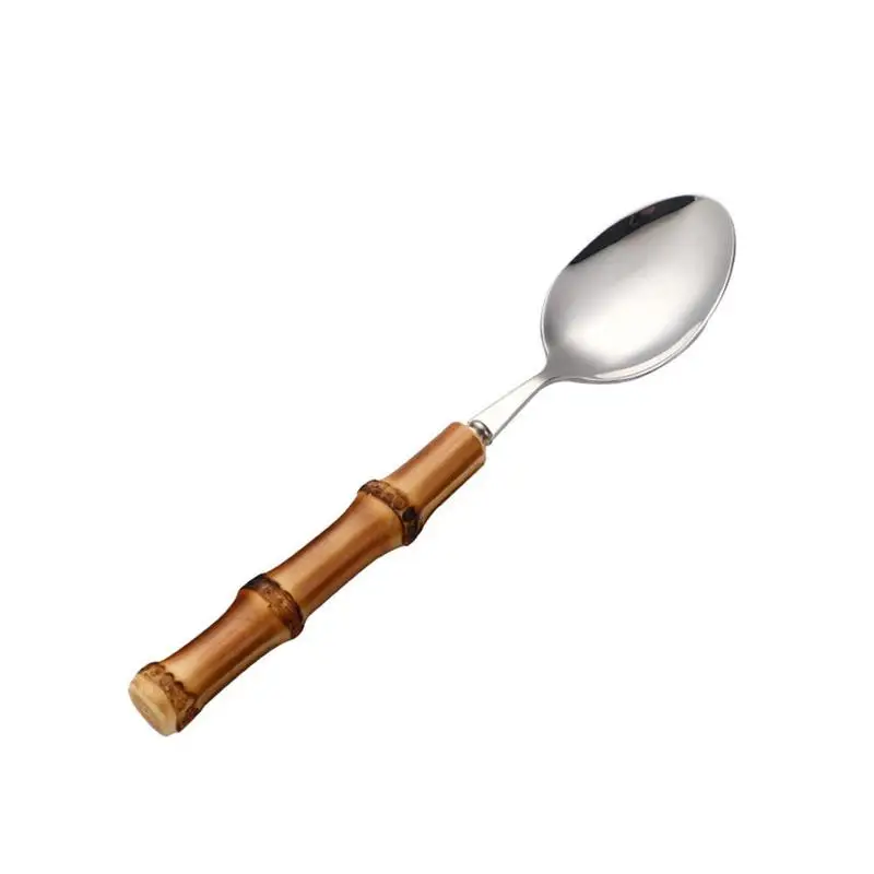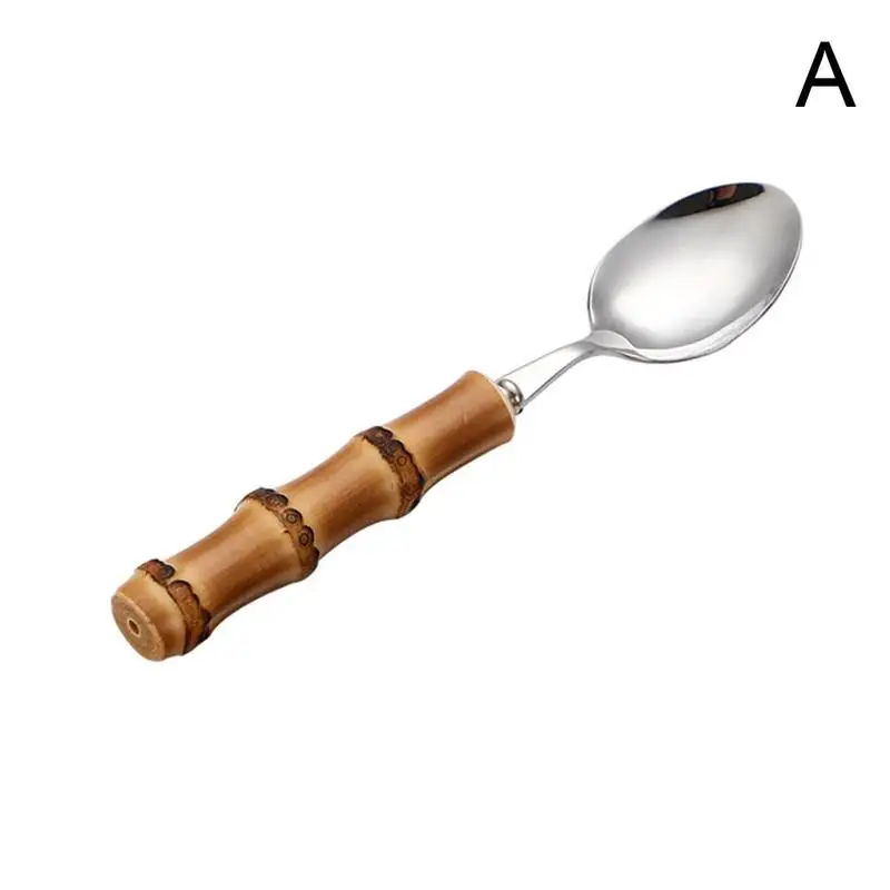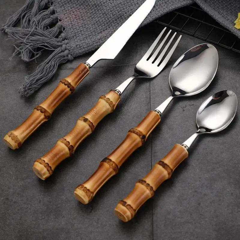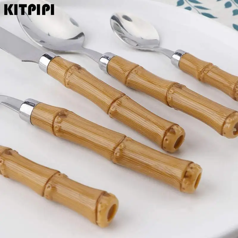 Столовая посуда с бамбуковой ручкой, ножи для стейка, столовые приборы, Стальные Вилки, набор столовых приборов, ложки, ножи, столовые приборы T6P8