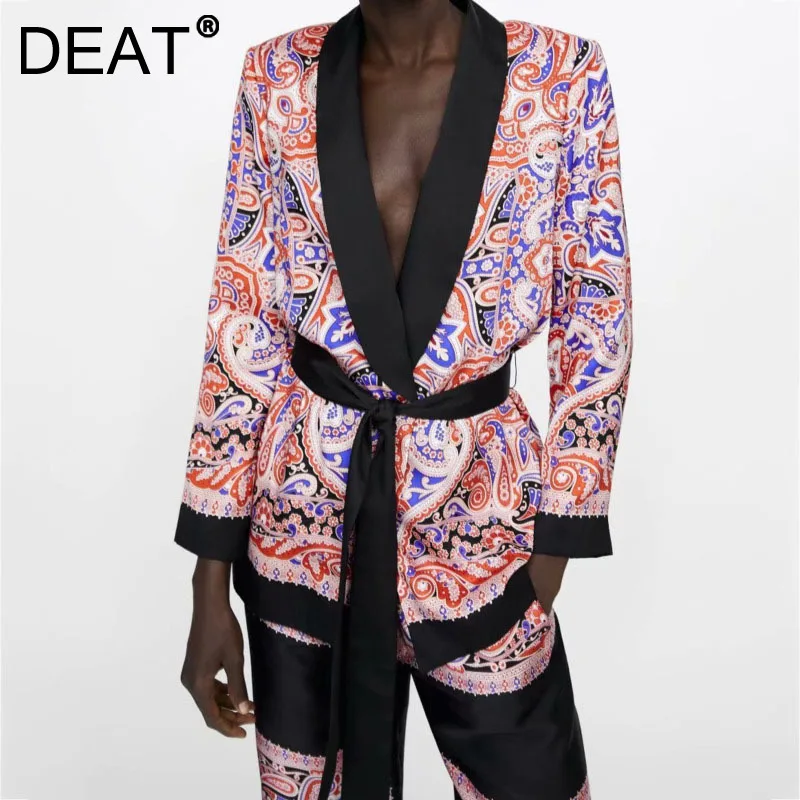 Женский блейзер с длинным рукавом DEAT, свободный пиджак с отложным воротником и поясом, осень 2022