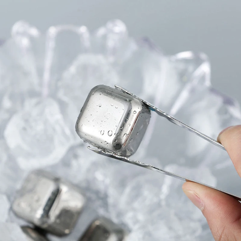 Кубики льда из нержавеющей стали, многоразовые кубики льда с щипцам...