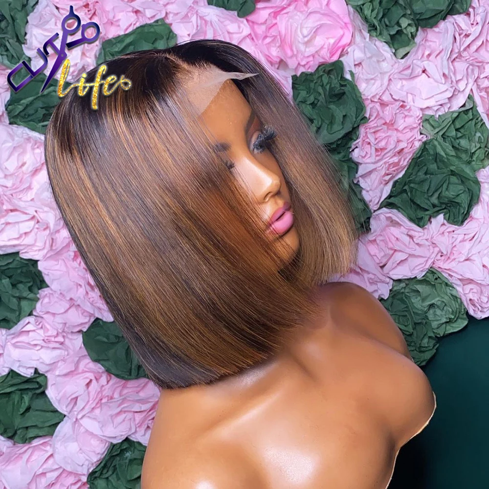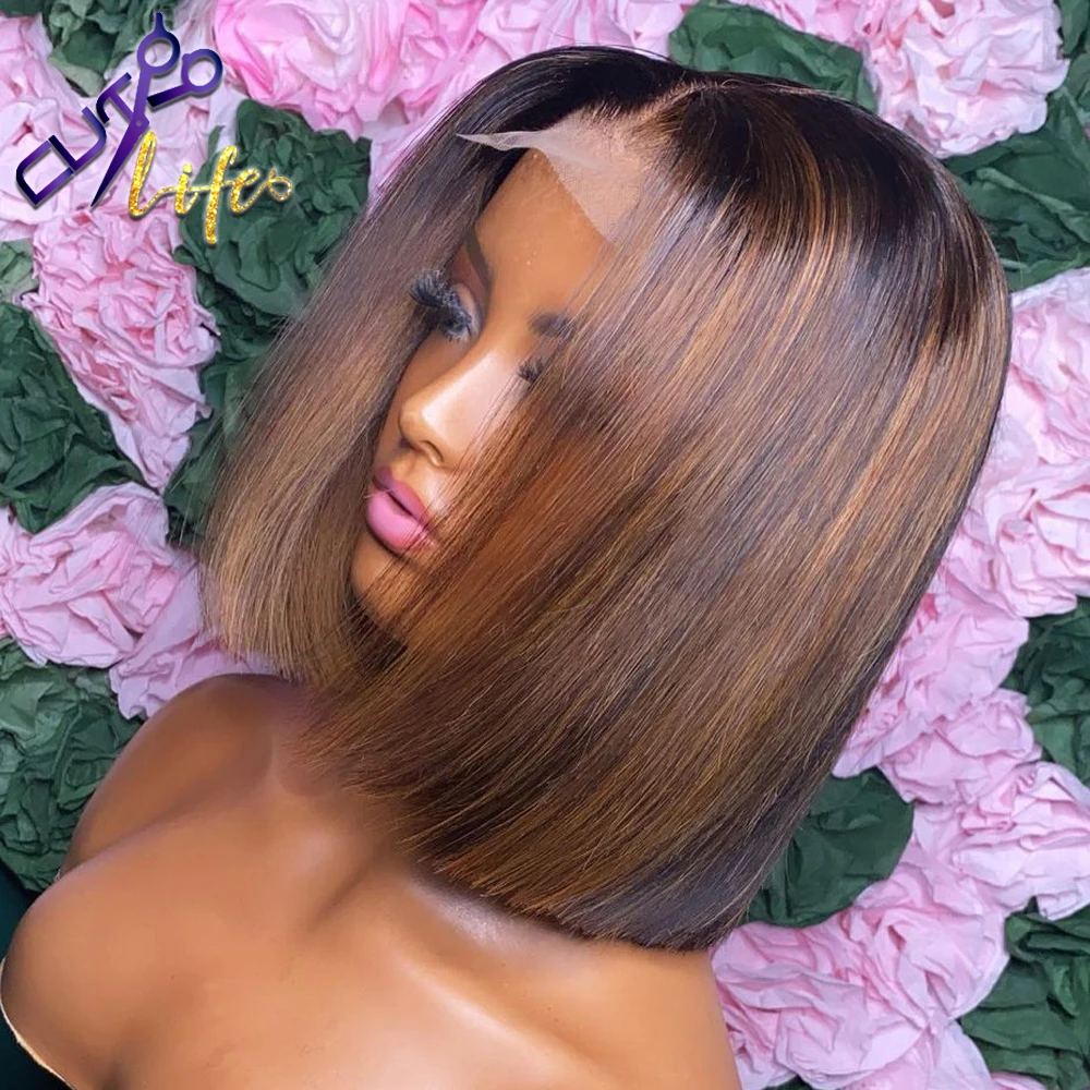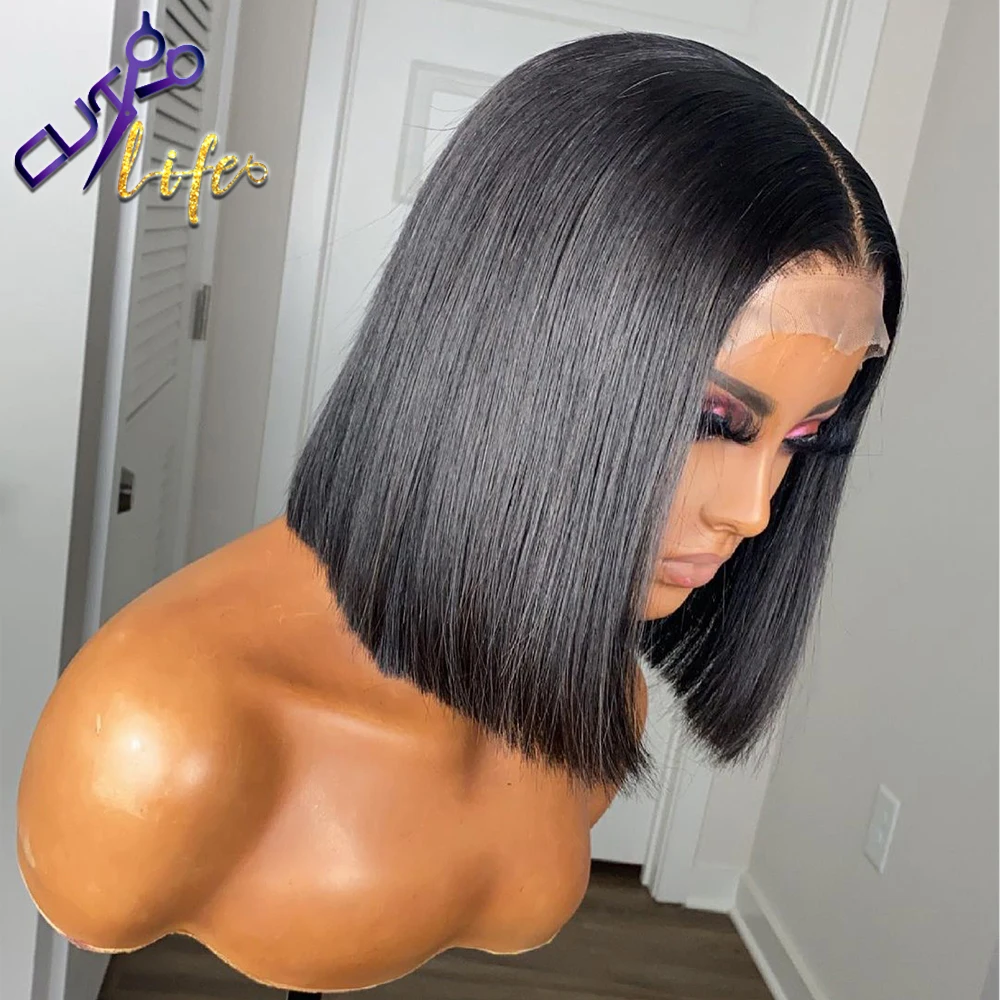 Короткий парик Боб 13x4, парик на сетке спереди, прямой, выделенный, предварительно выщипанные волосы Remy, человеческие волосы, парик на сетке для черных женщин