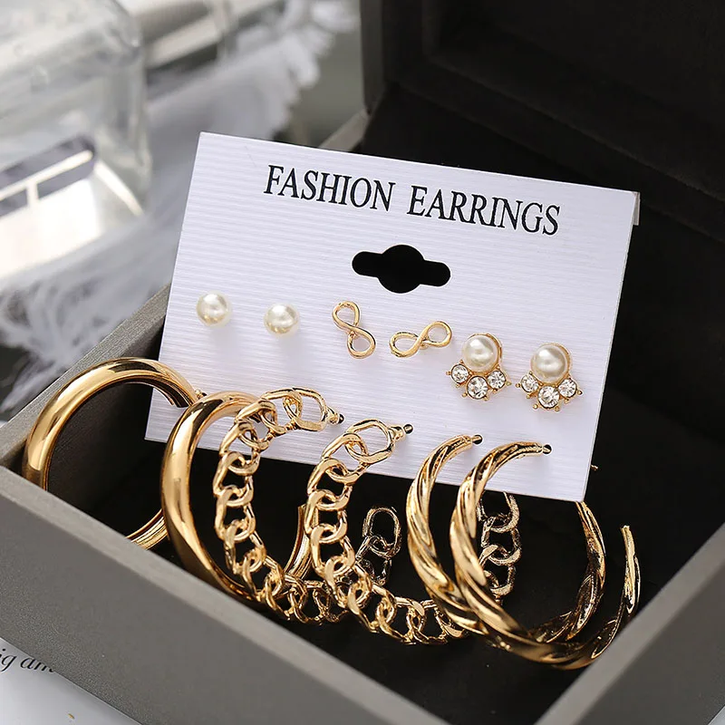 Винтажные геометрические золотые металлические бриллиантовые серьги-подвески в стиле панк с жемчугом 2021, трендовый набор серег, ювелирные изделия