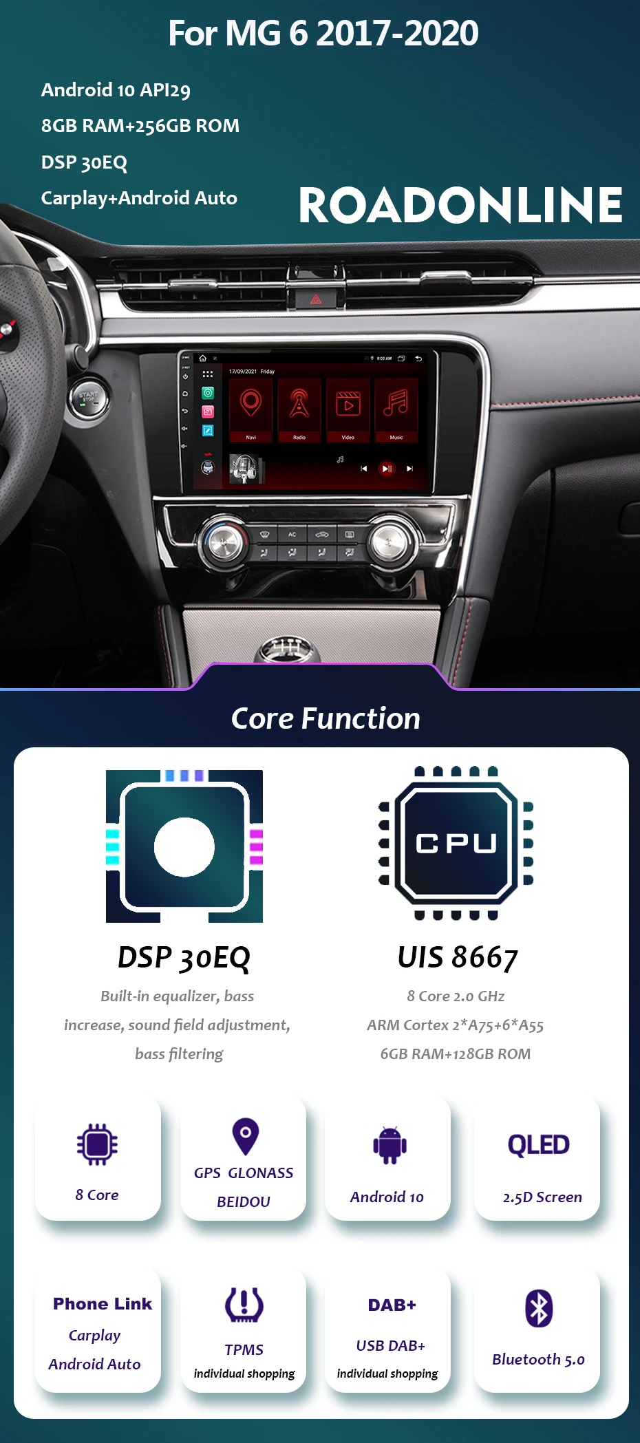 Автомобильный мультимедийный плеер с Gps, 8 + 256 ГБ, для MG6 Mg 6 2017-2020, автомобильный радиоприемник, стереоприемник, Android 10,0, Восьмиядерный процессор