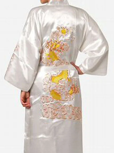 Модные китайские мужские кимоно RobeEmbroideryKimono для ванной GownDragonSize S M L XL XXL XXXL