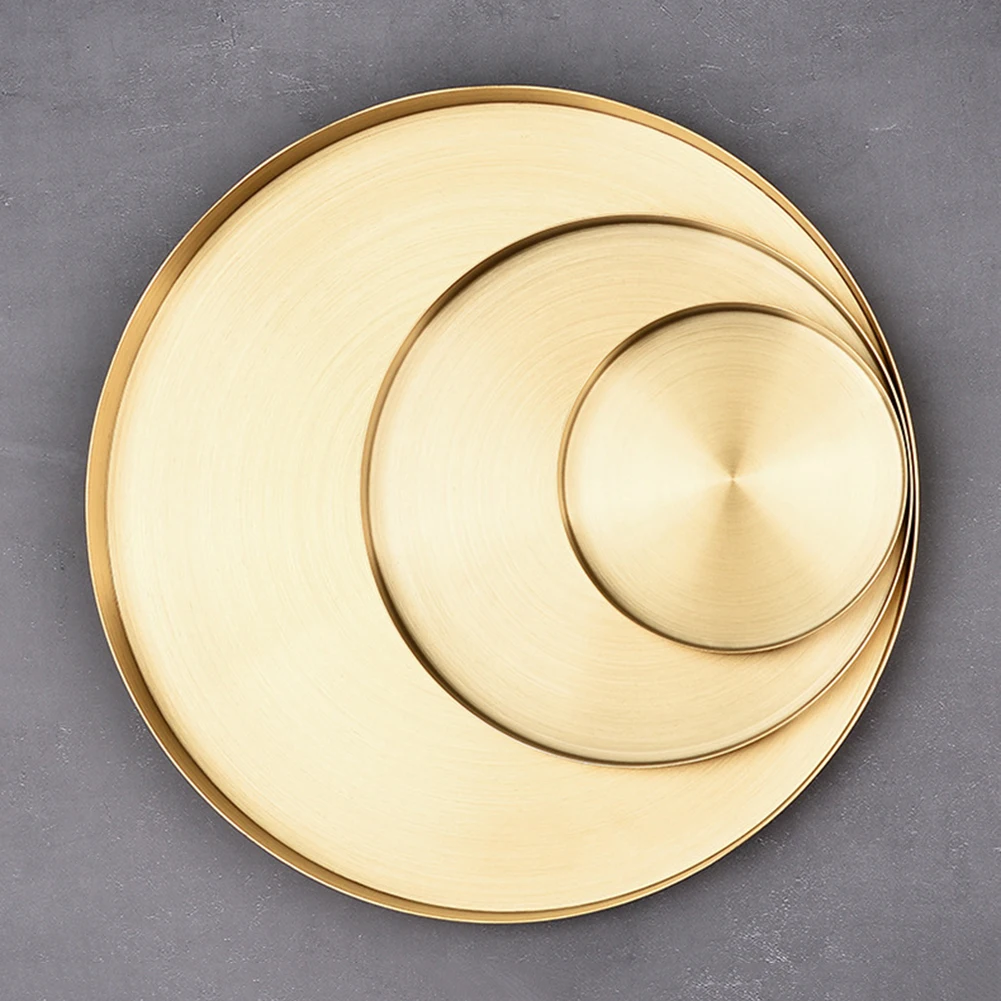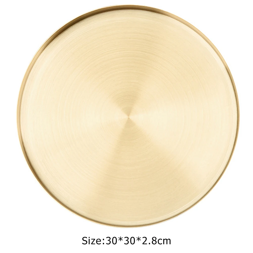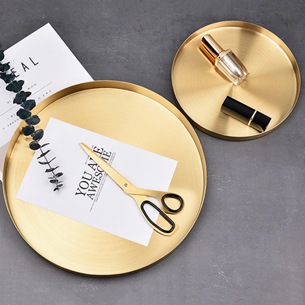Золотой лоток для хранения из нержавеющей стали, Европейский деликатный круглый органайзер для ювелирных изделий, кухонный лоток для фруктов, домашний декор